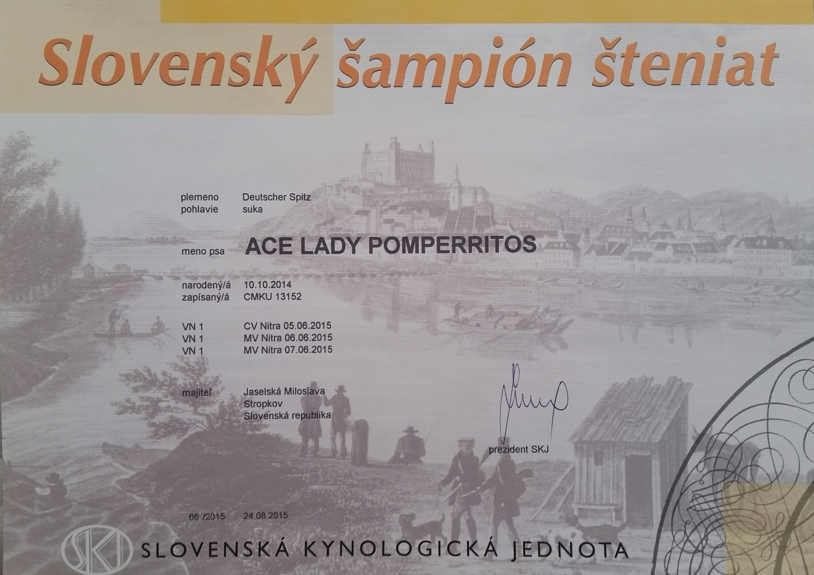 Preukaz pôvodu psa - 1. strana: