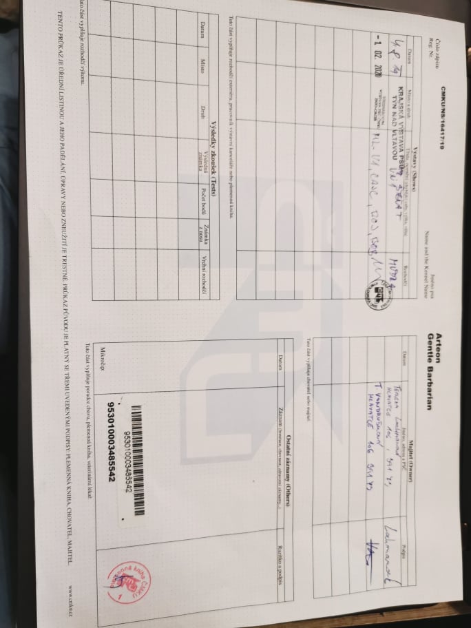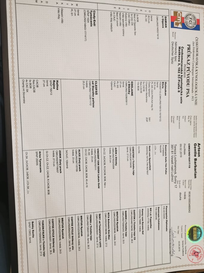 Preukaz pôvodu psa - 1. strana: