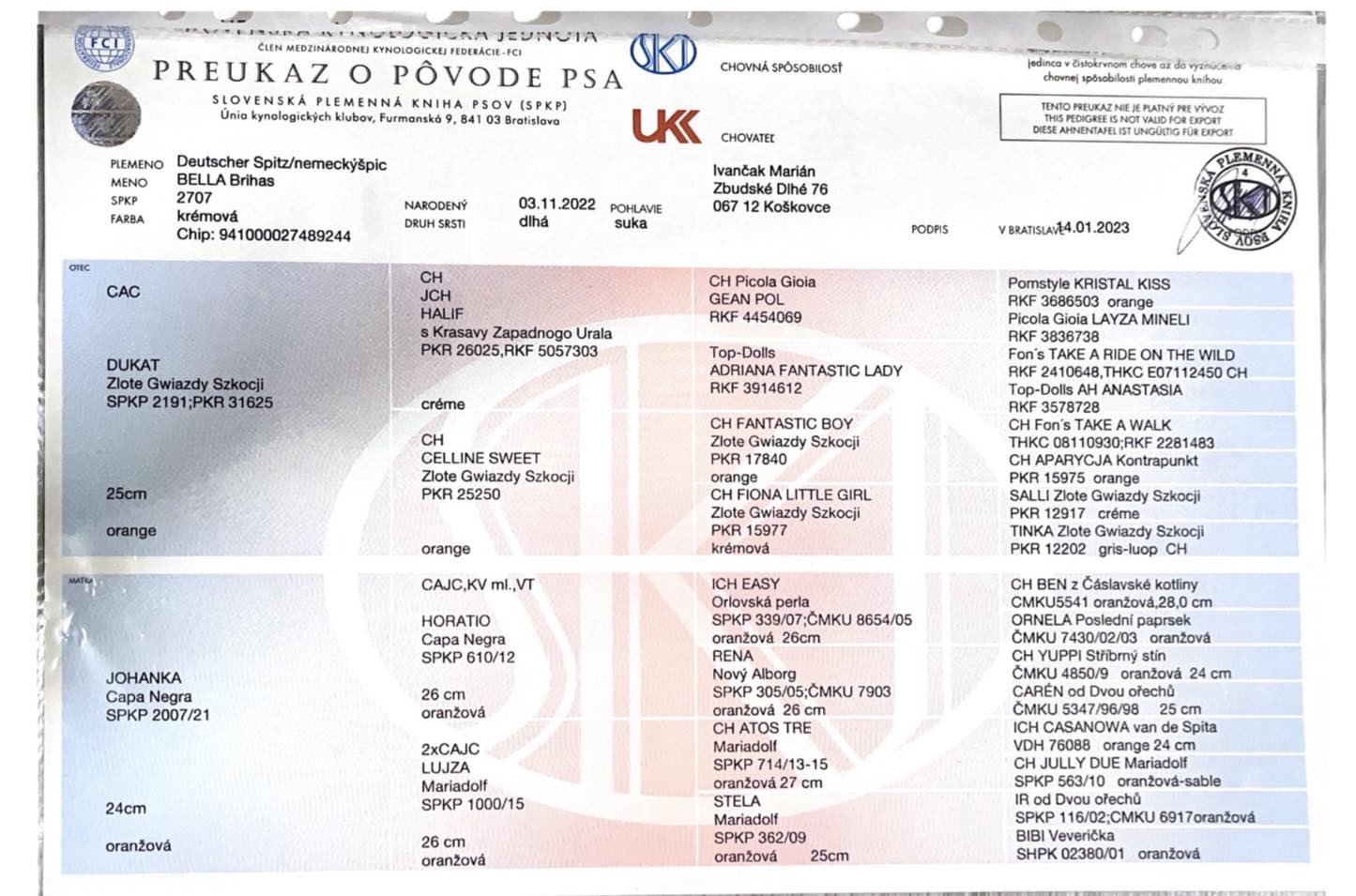Preukaz pôvodu psa - 1. strana: