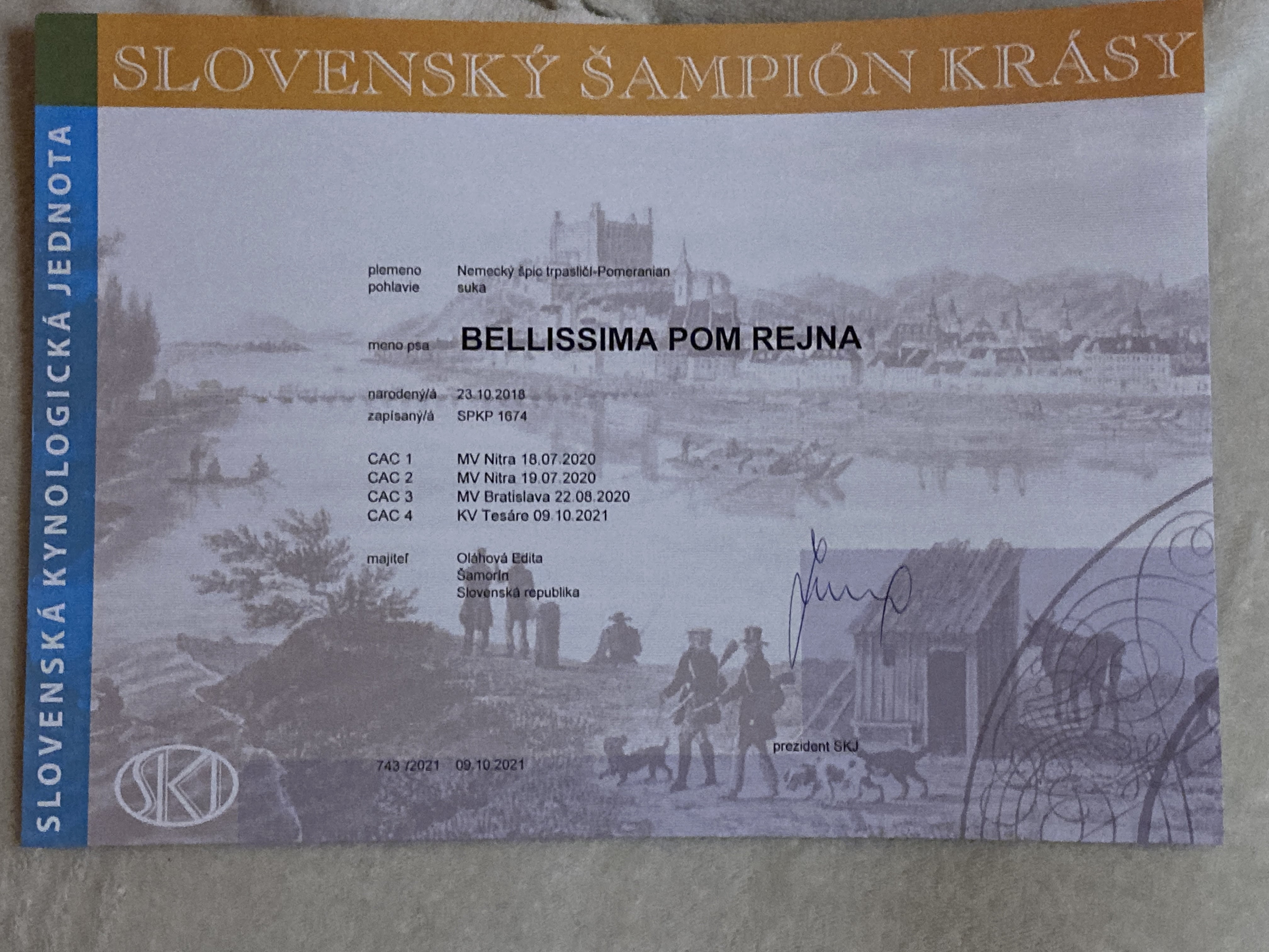 Preukaz pôvodu psa - 1. strana: