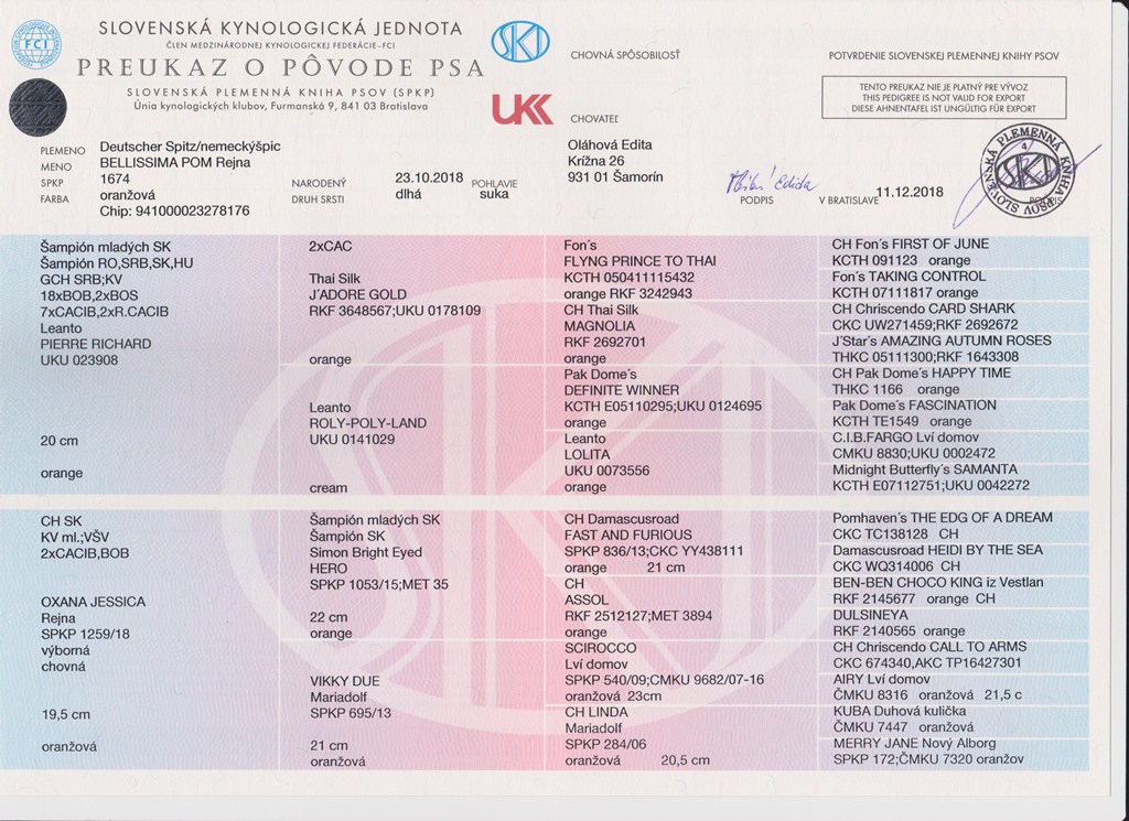 Preukaz pôvodu psa - 2. strana: