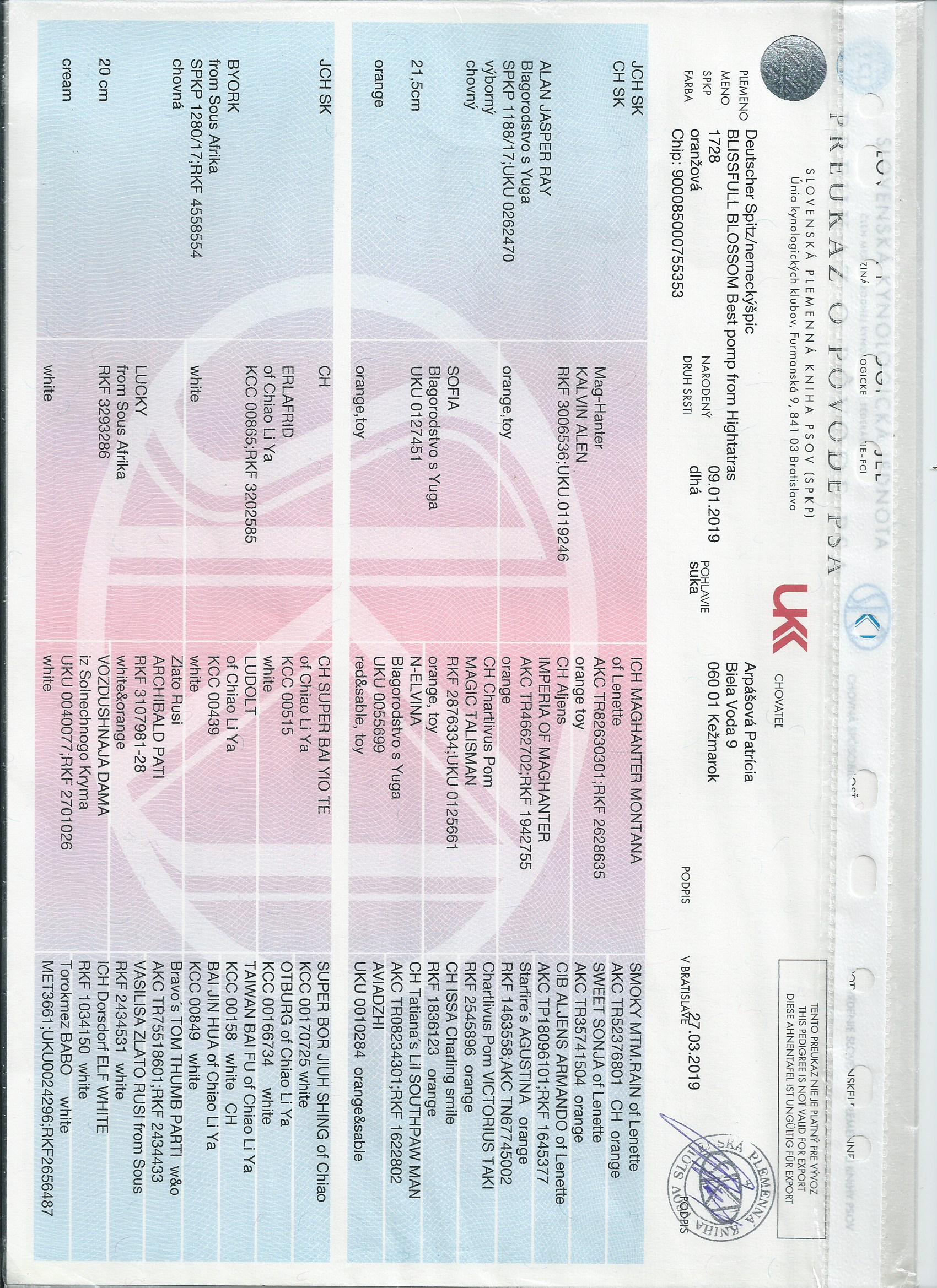 Preukaz pôvodu psa - 1. strana: