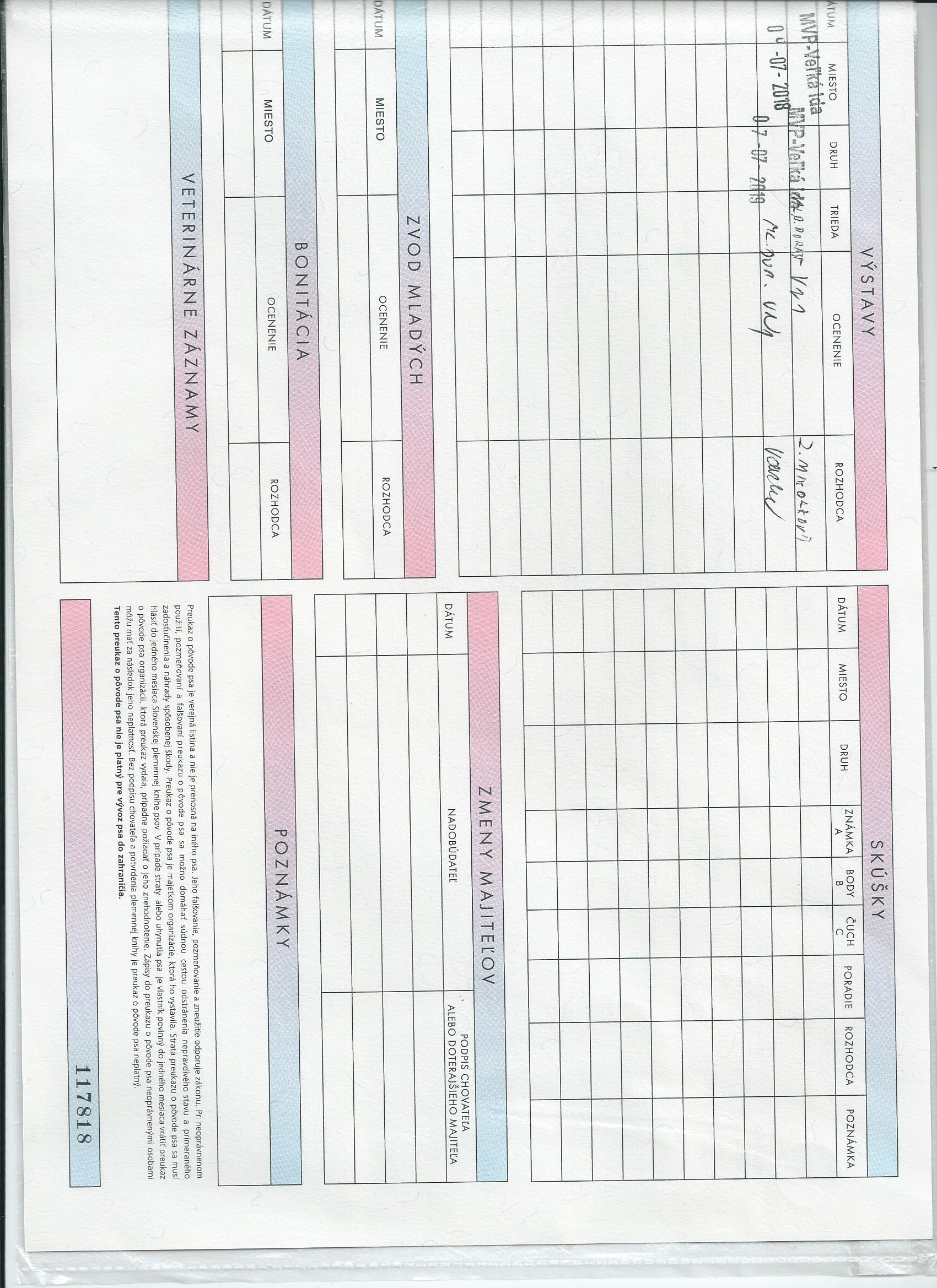 Preukaz pôvodu psa - 2. strana: