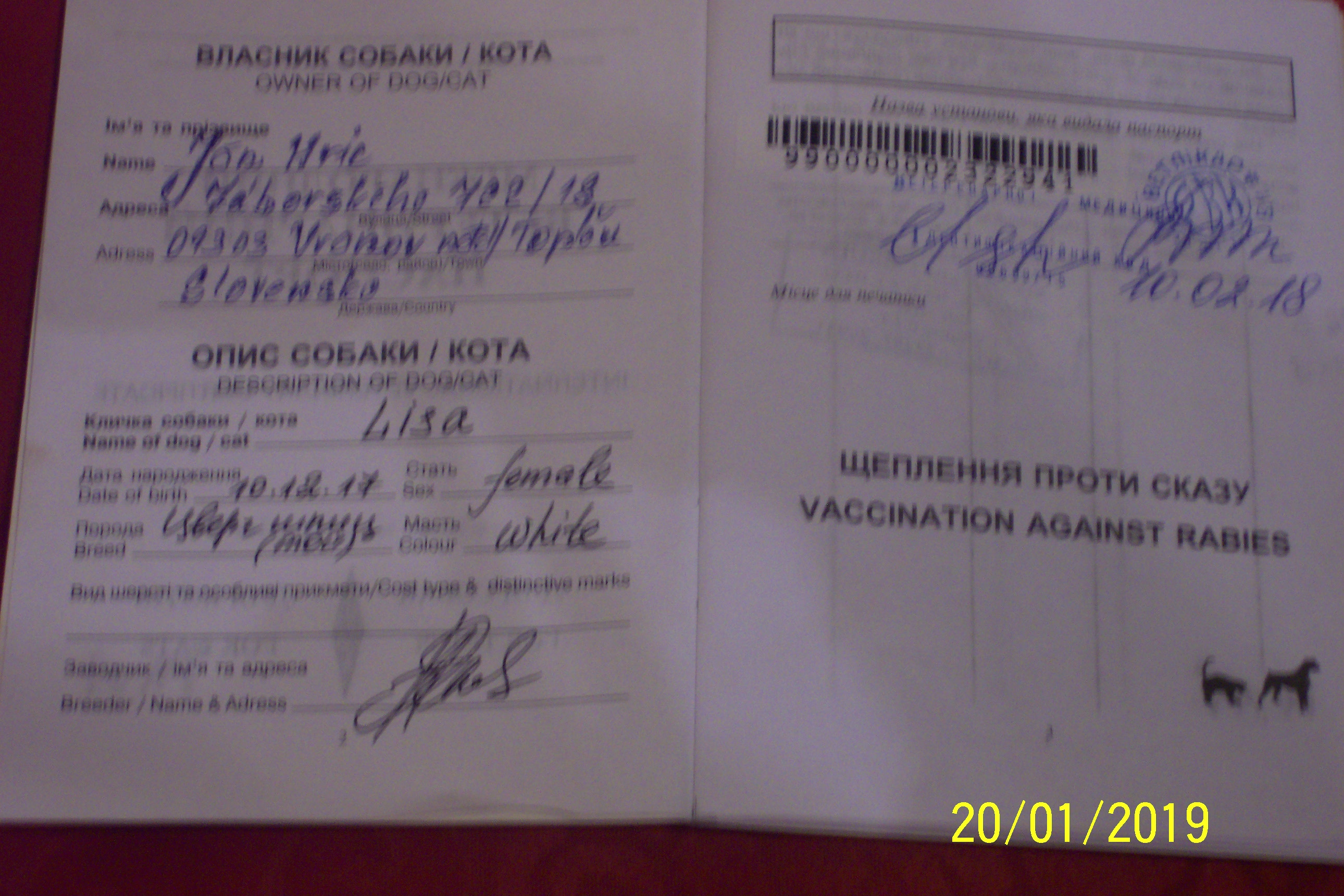 Preukaz pôvodu psa - 1. strana: