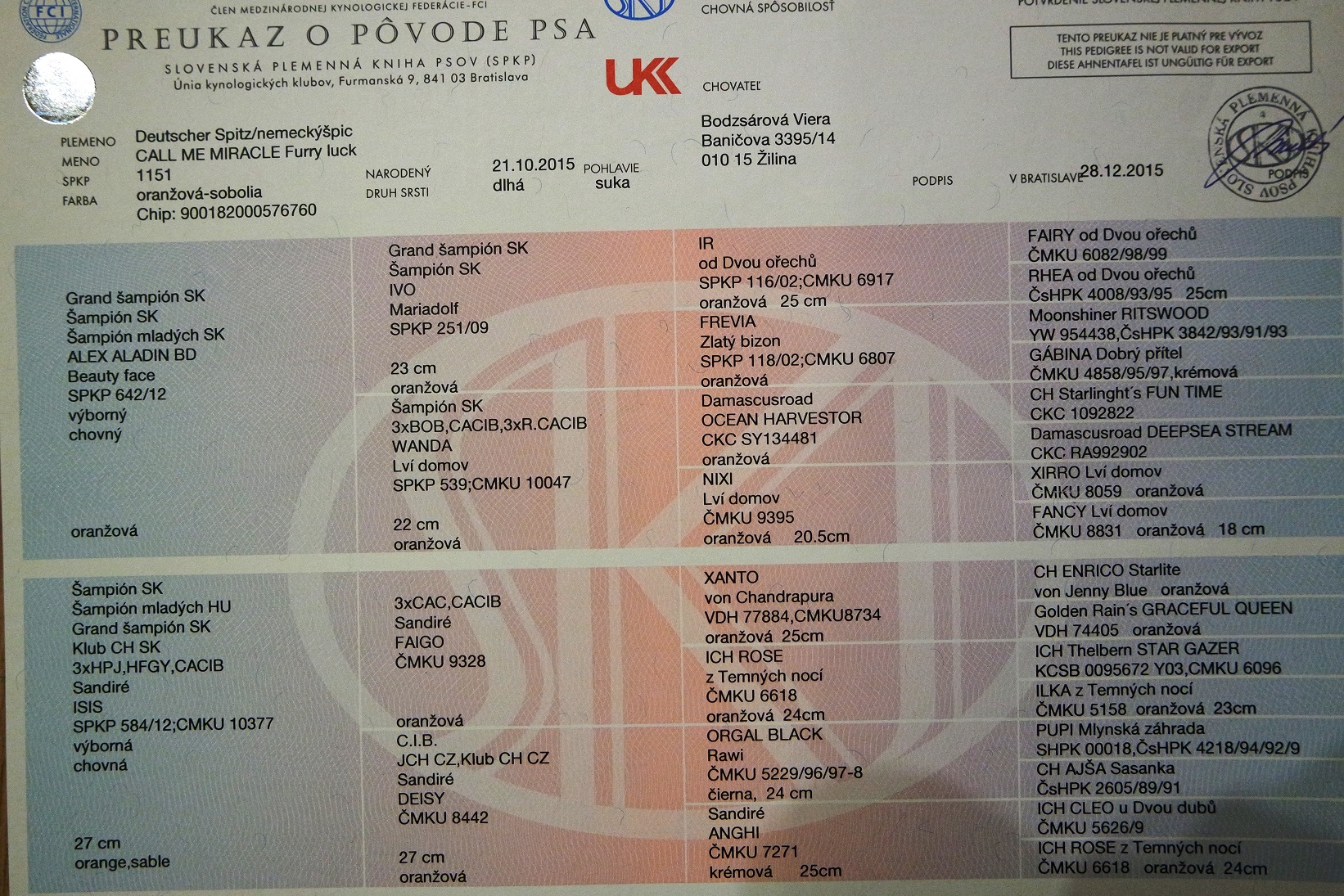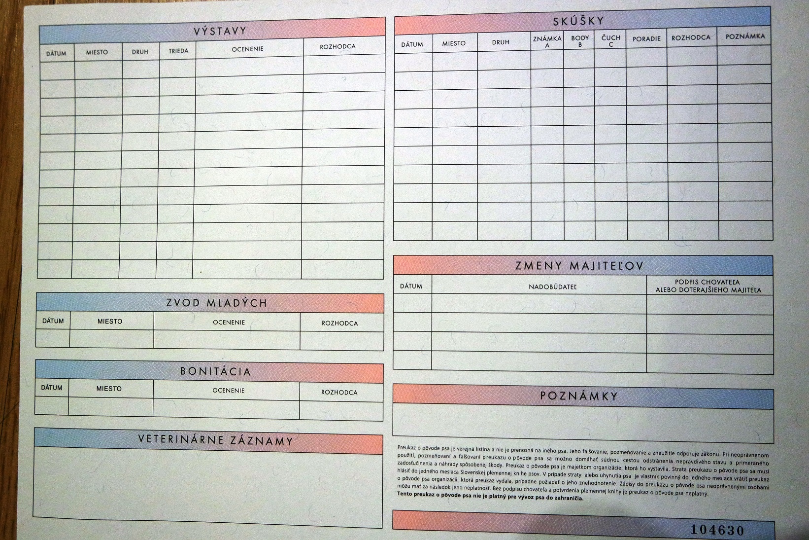 Preukaz pôvodu psa - 1. strana: