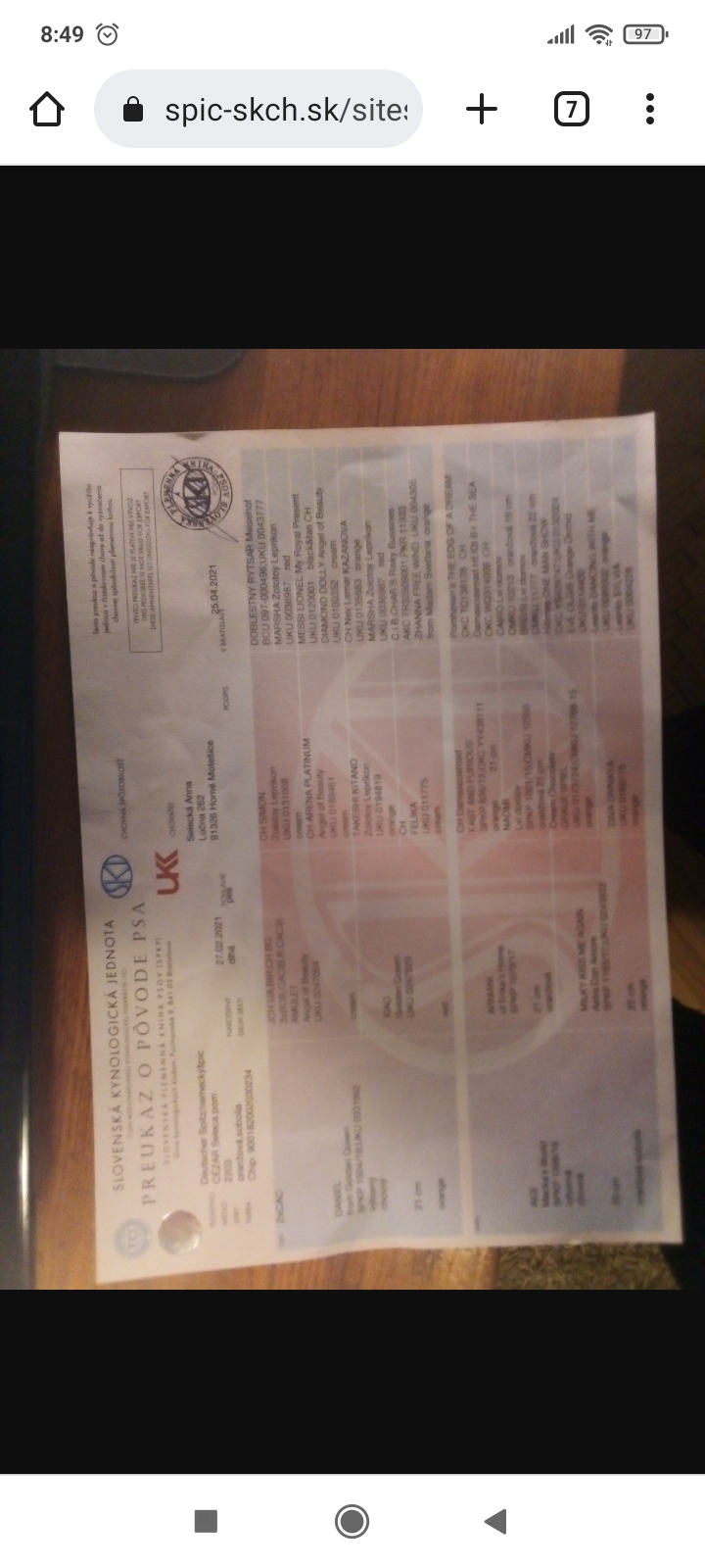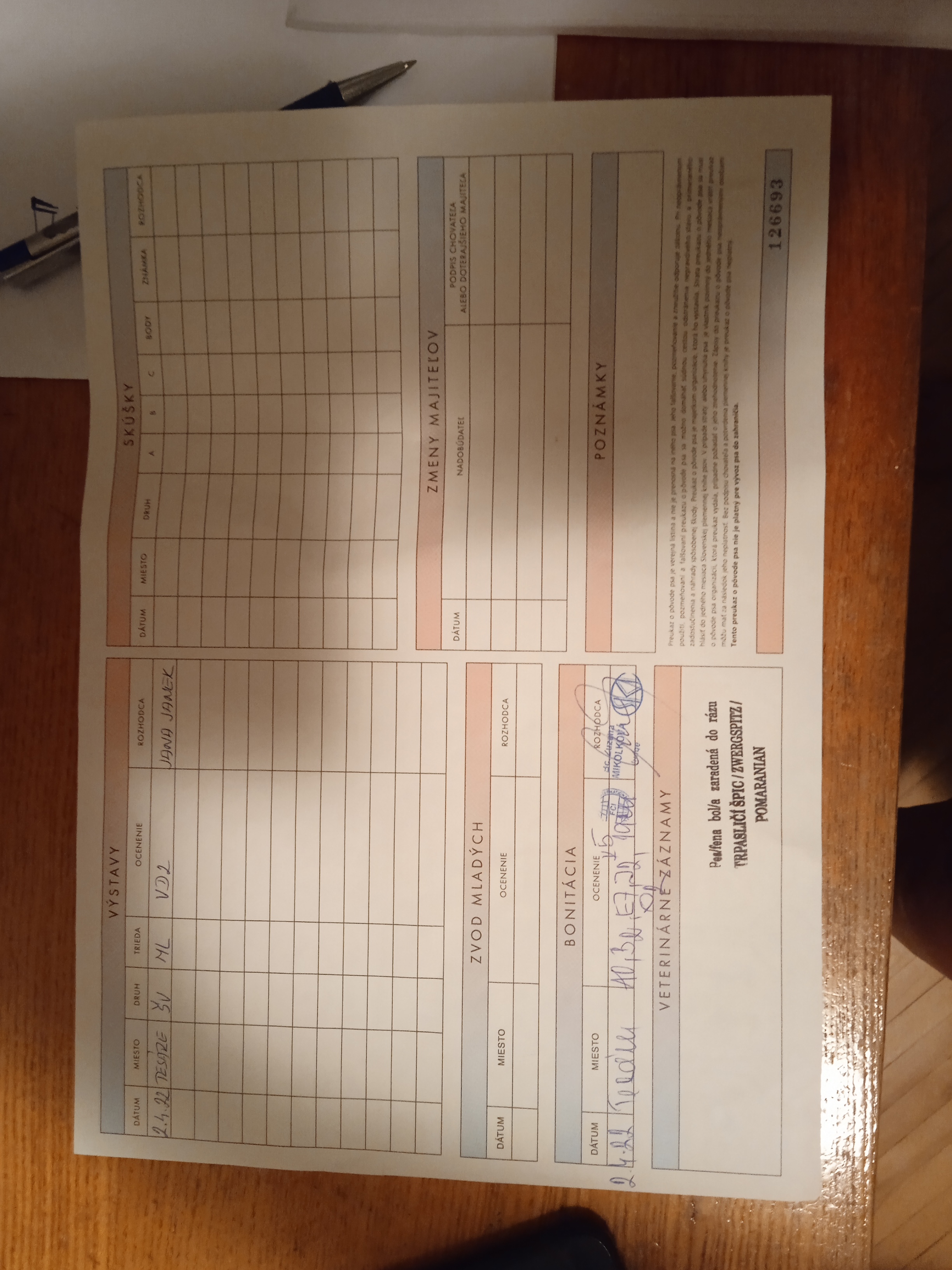 Preukaz pôvodu psa - 1. strana: