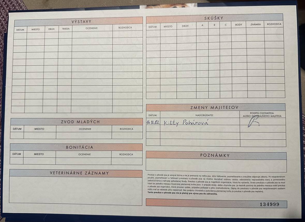 Preukaz pôvodu psa - 2. strana: