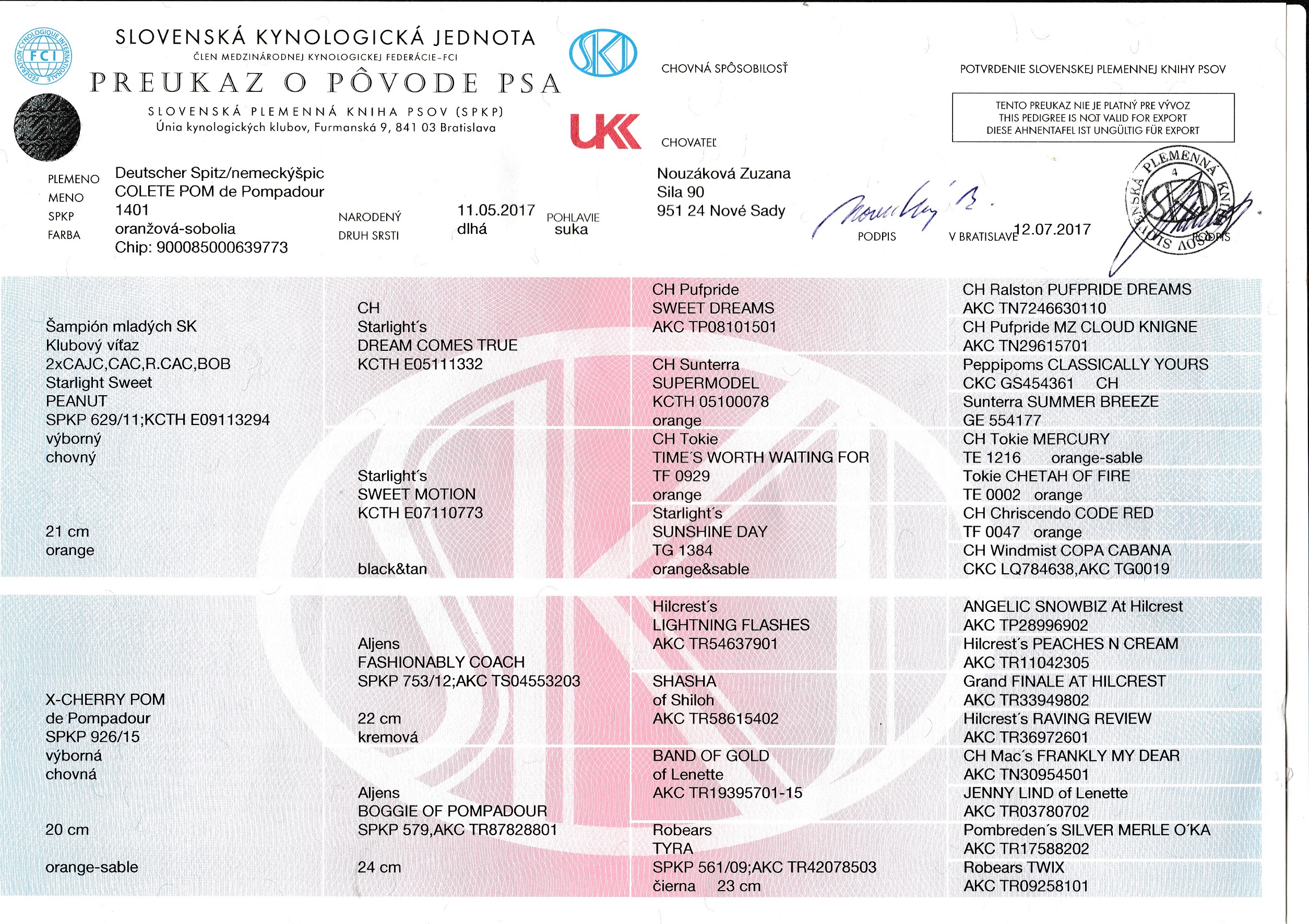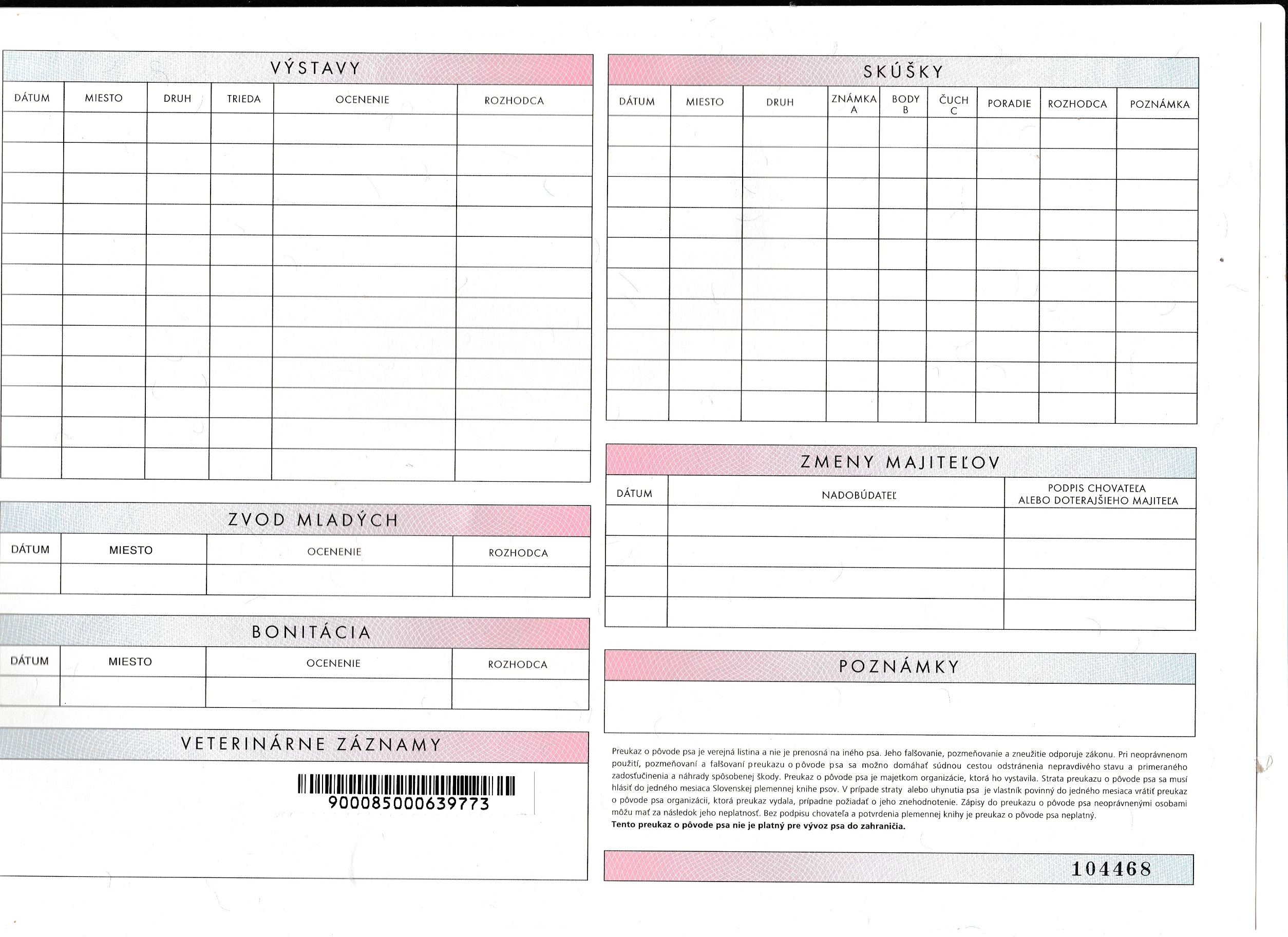 Preukaz pôvodu psa - 1. strana: