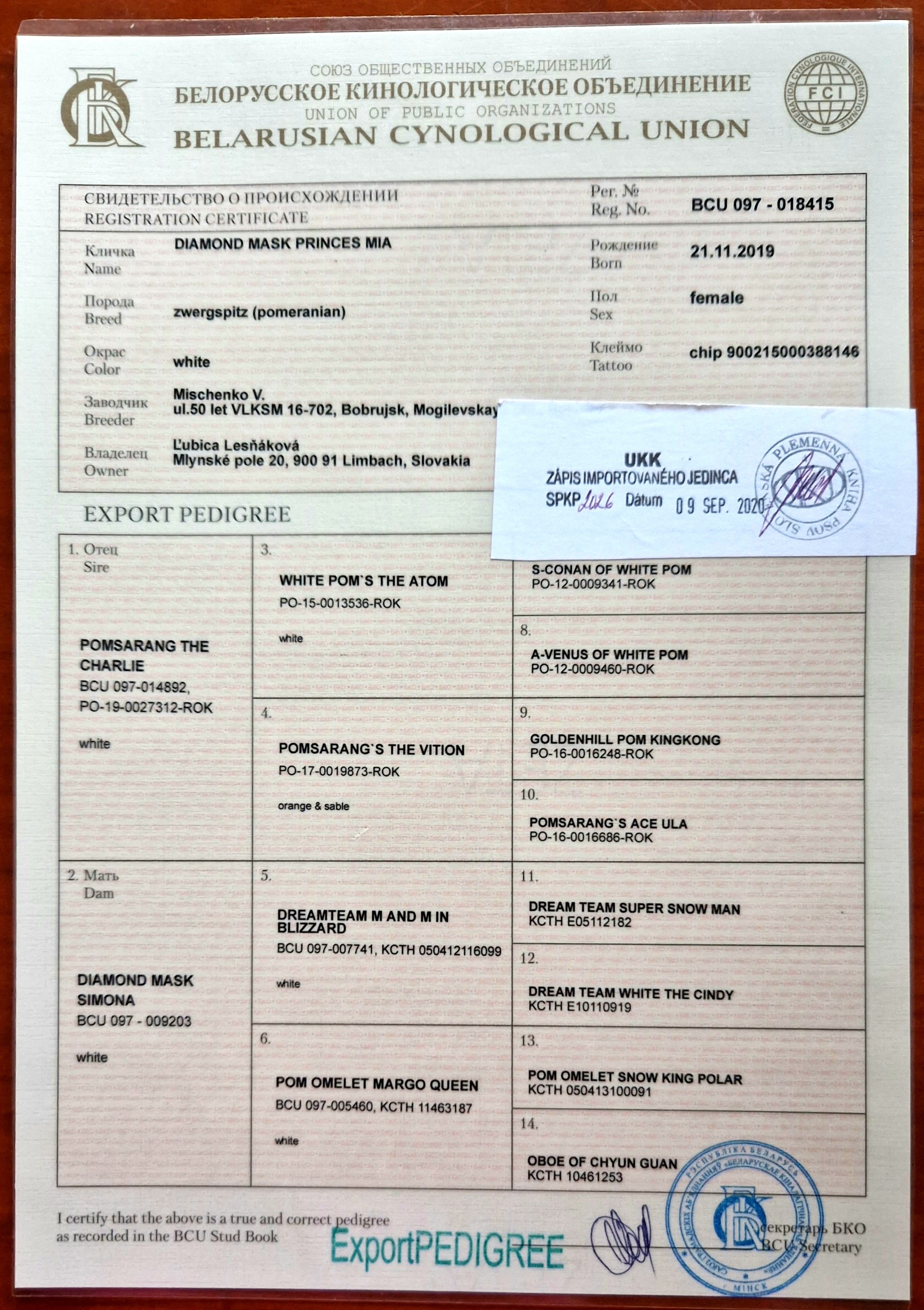 Preukaz pôvodu psa - 2. strana: