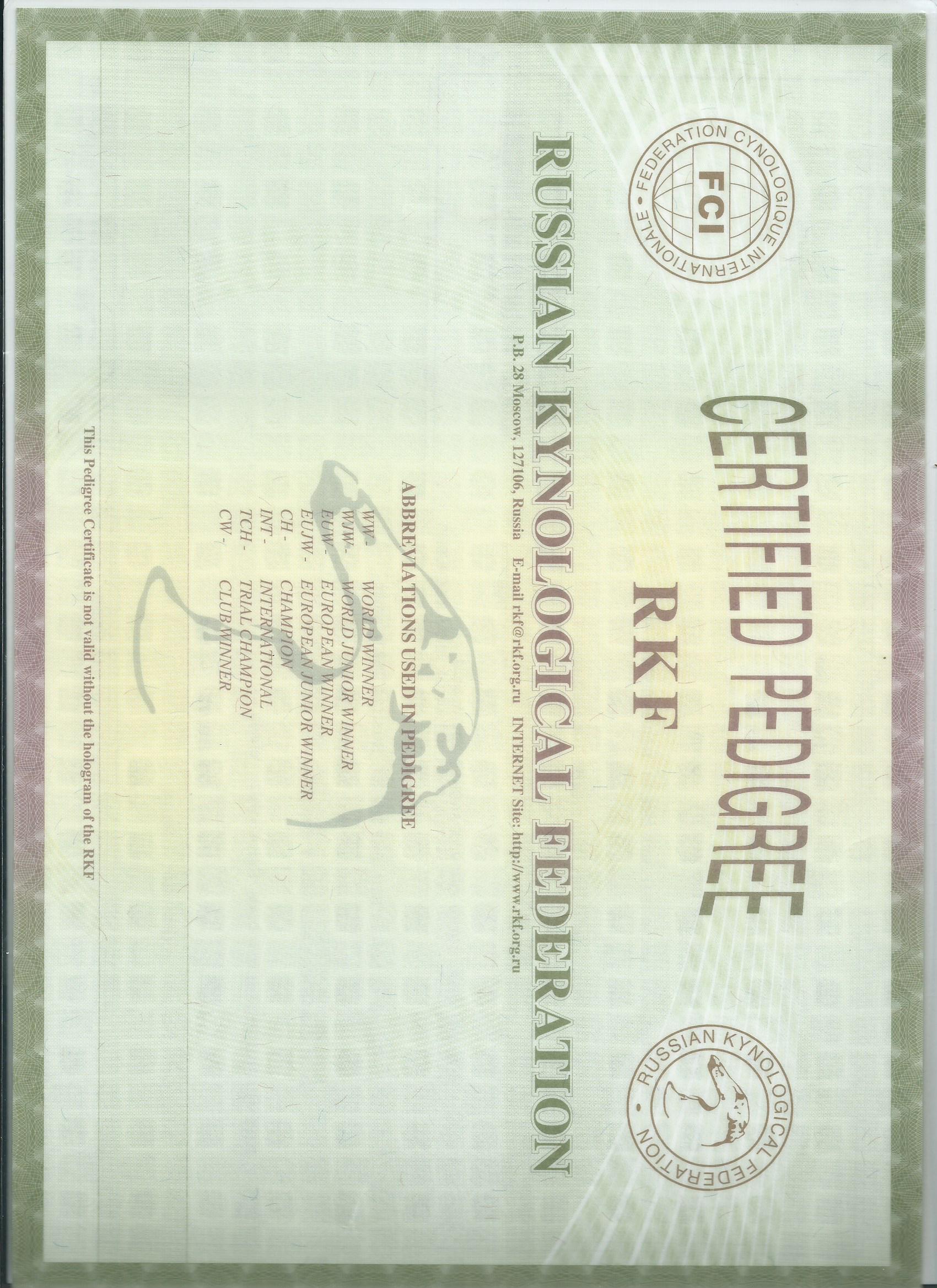 Preukaz pôvodu psa - 1. strana: