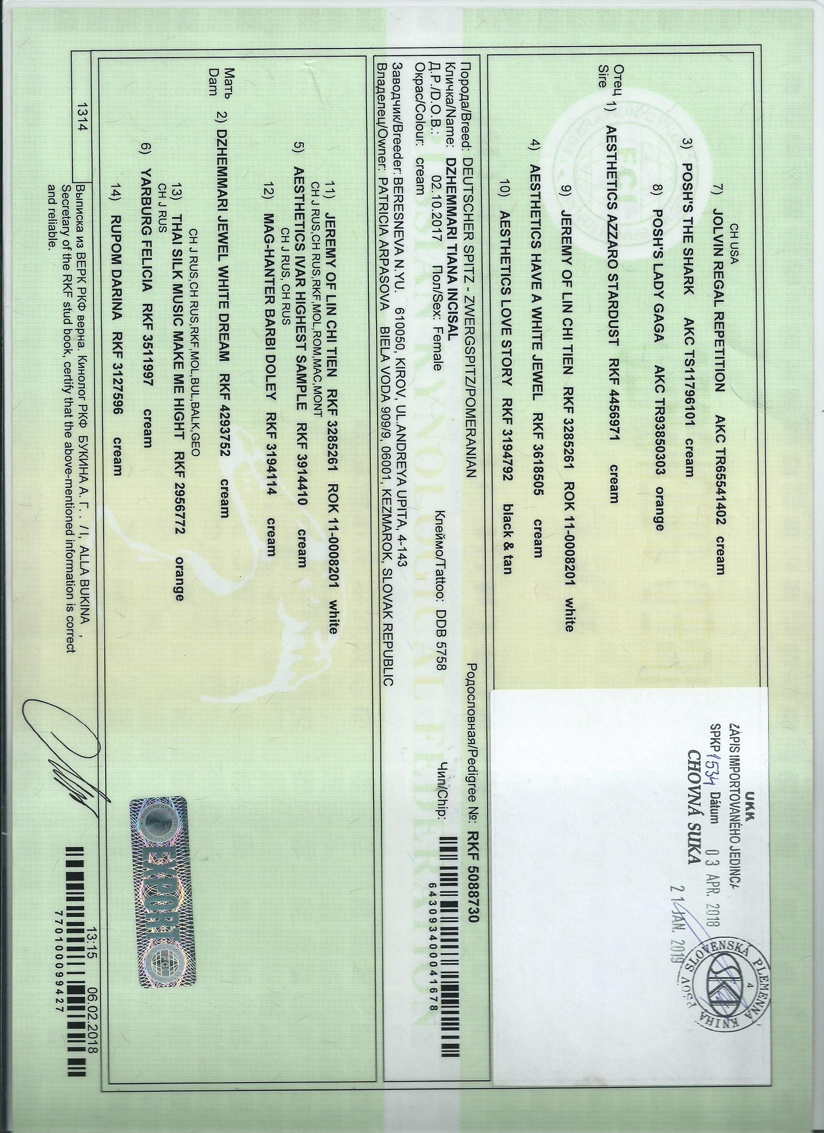 Preukaz pôvodu psa - 2. strana: