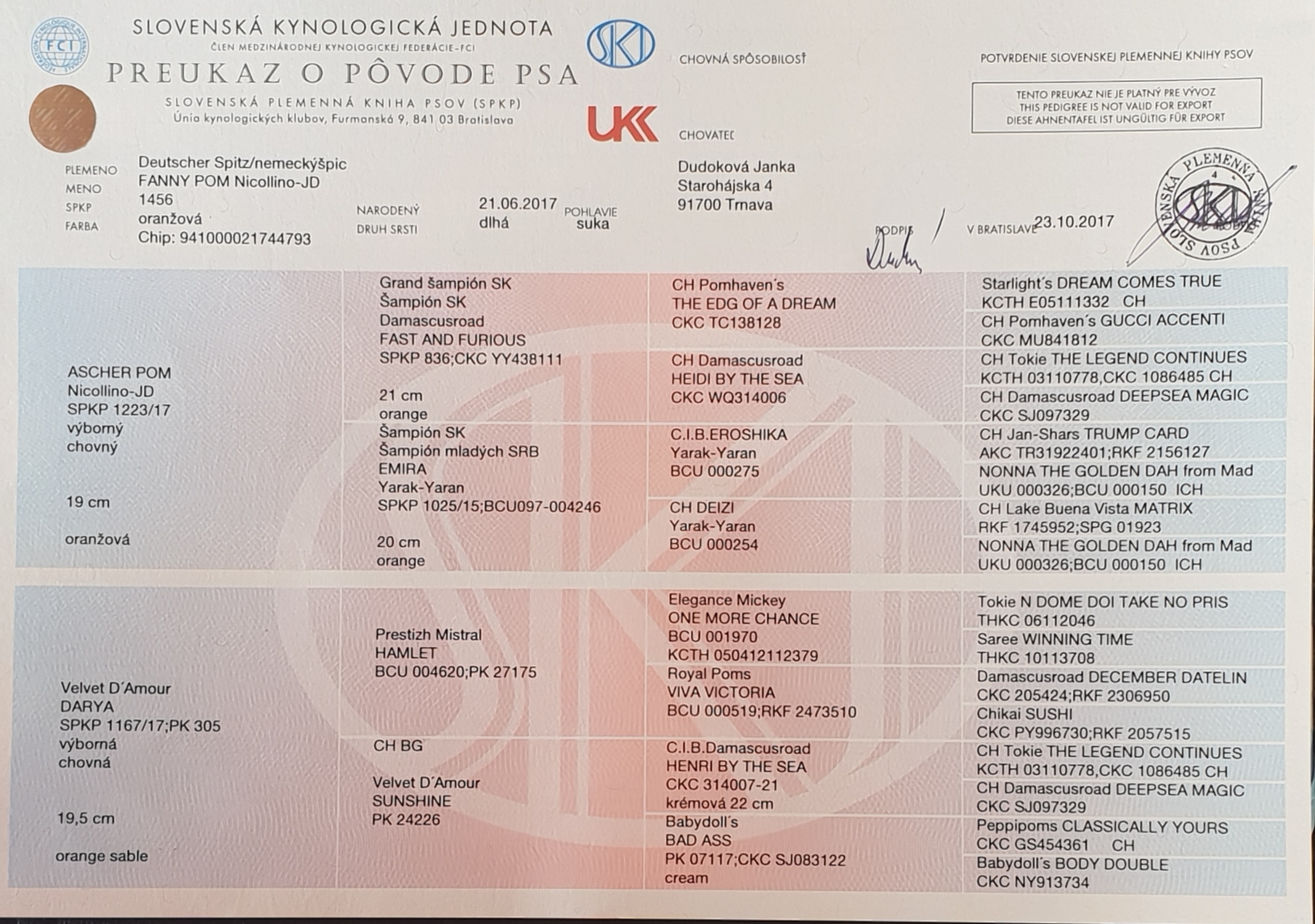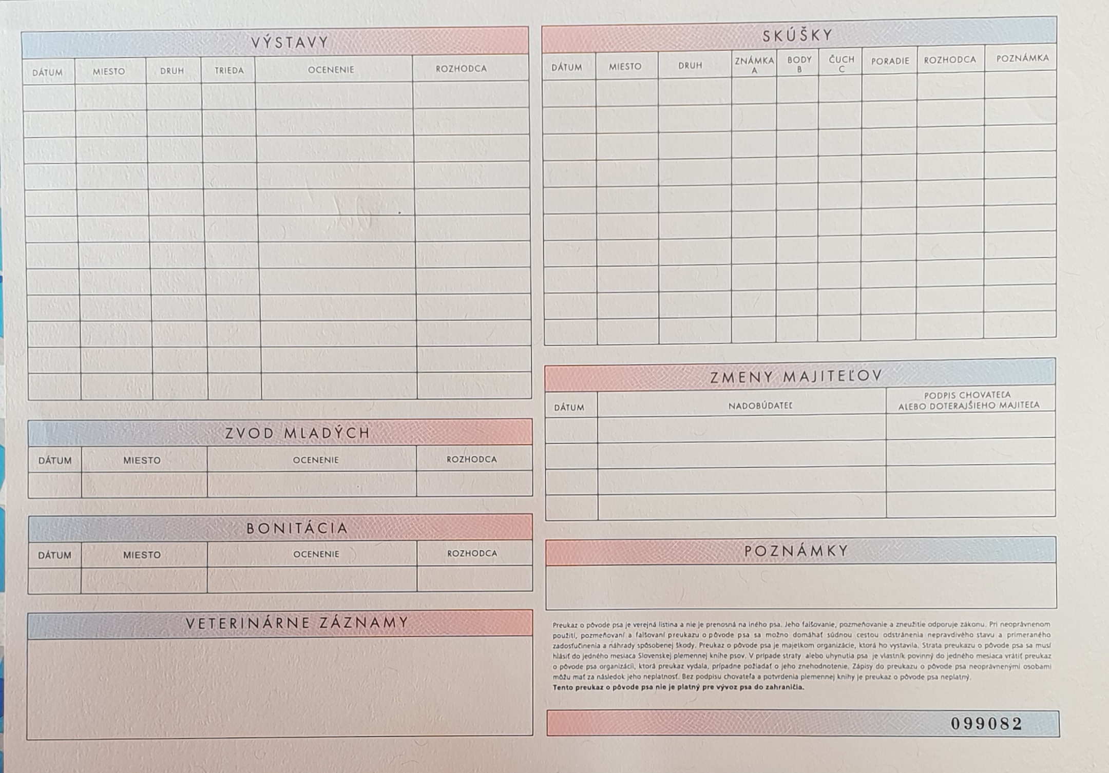 Preukaz pôvodu psa - 2. strana: