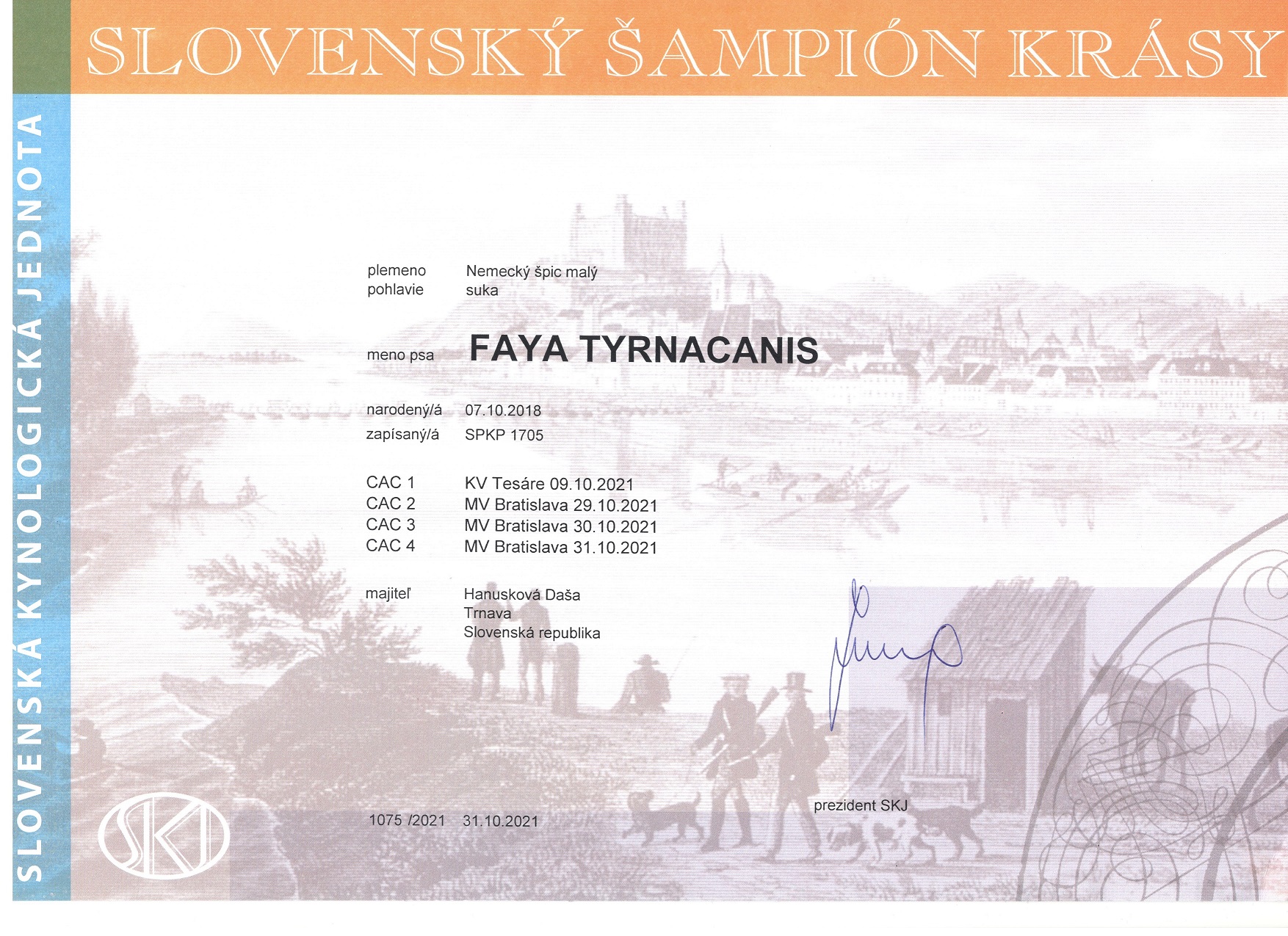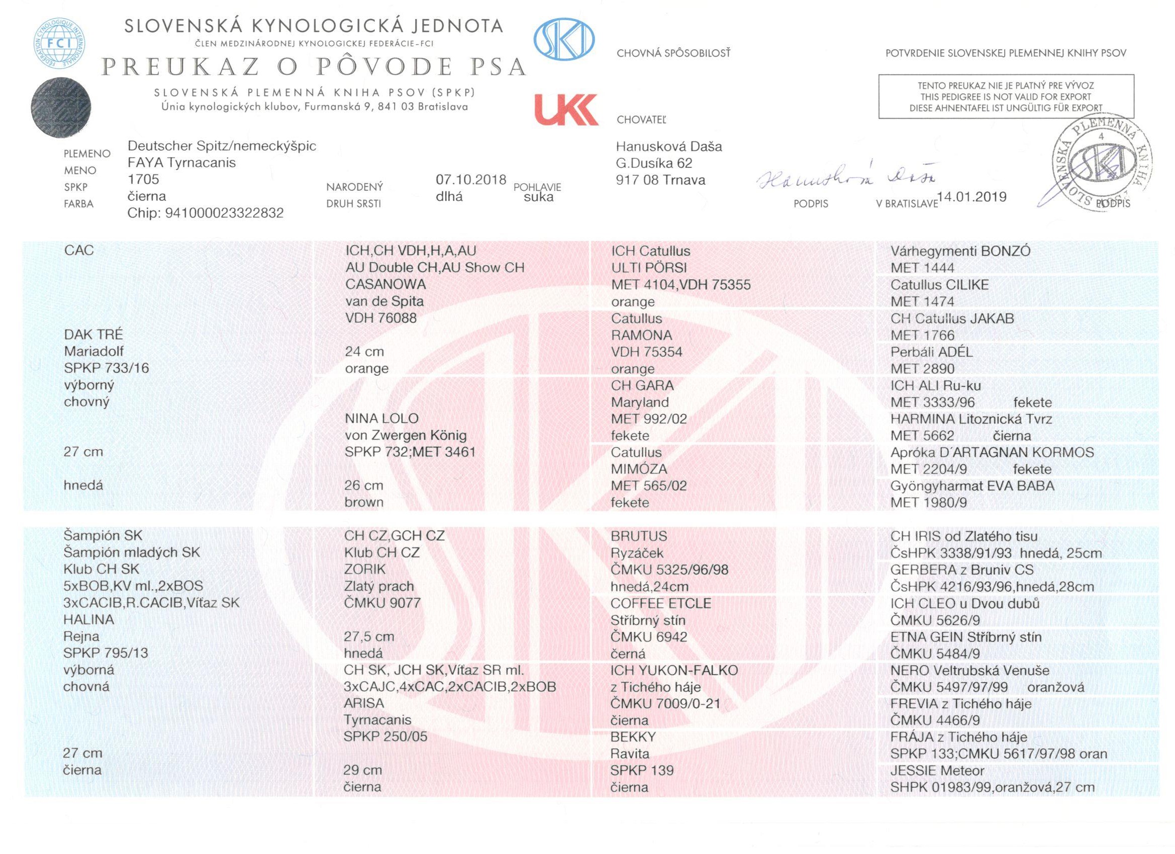 Preukaz pôvodu psa - 1. strana: