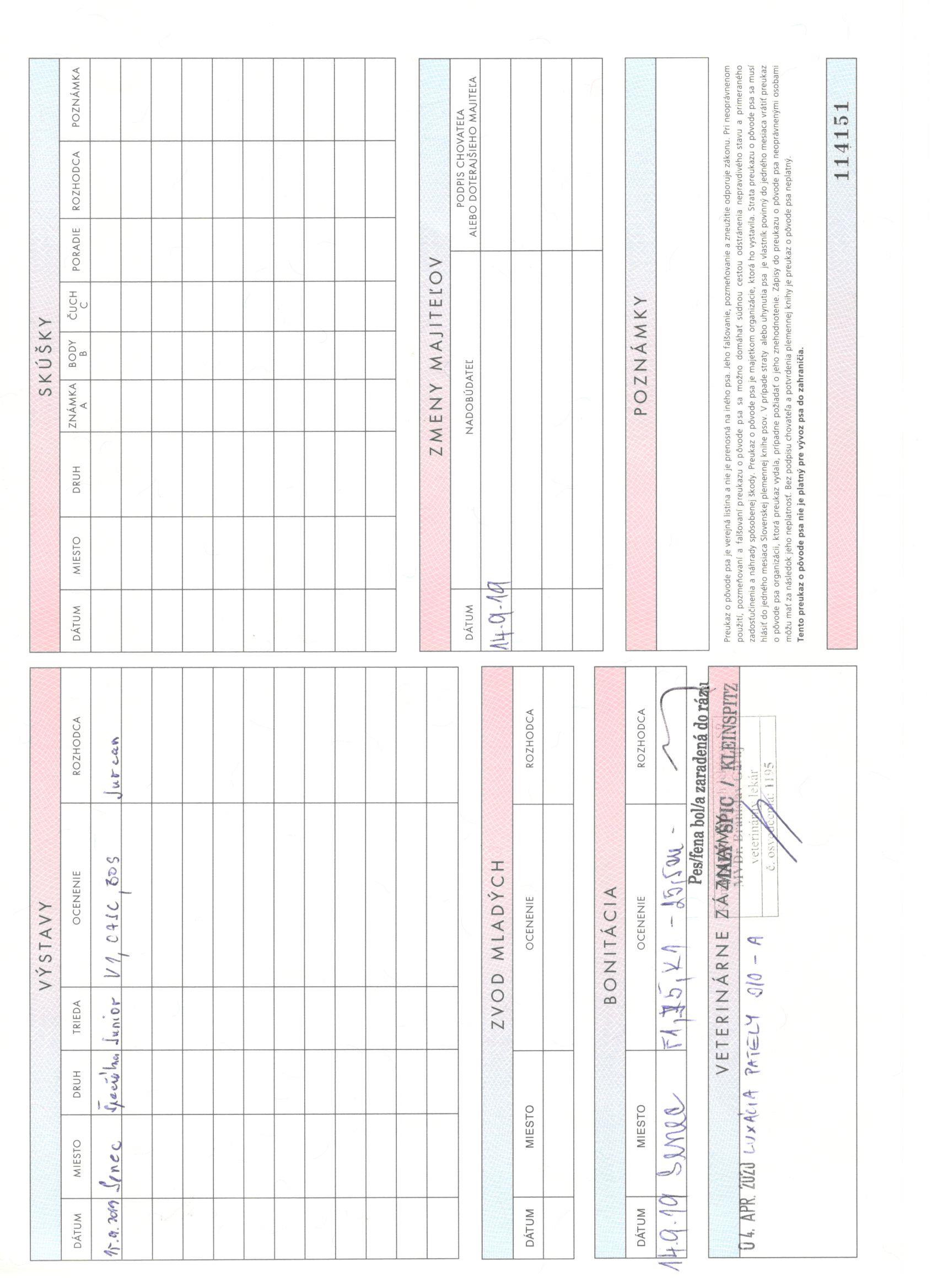 Preukaz pôvodu psa - 2. strana: