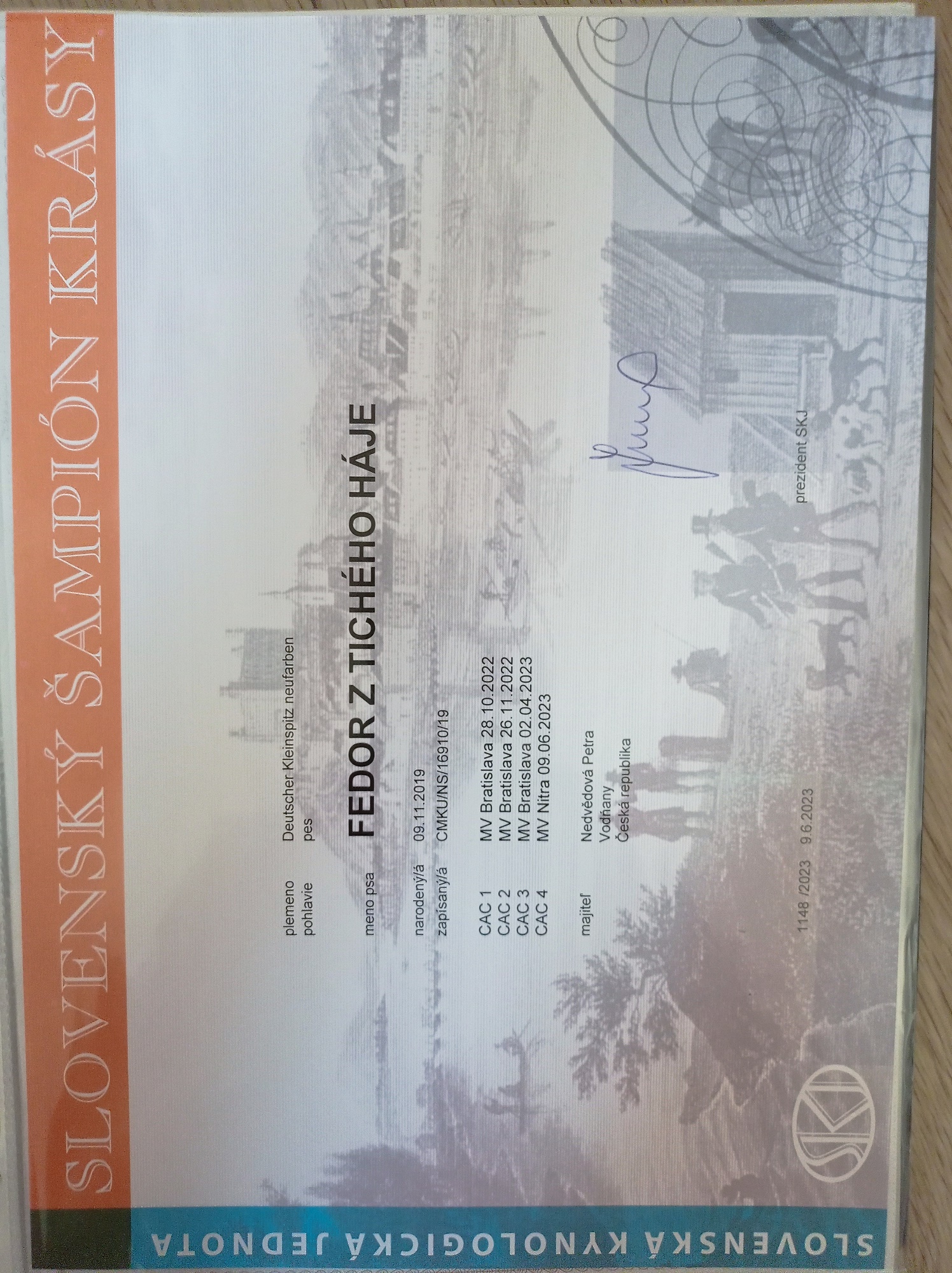 Preukaz pôvodu psa - 1. strana: