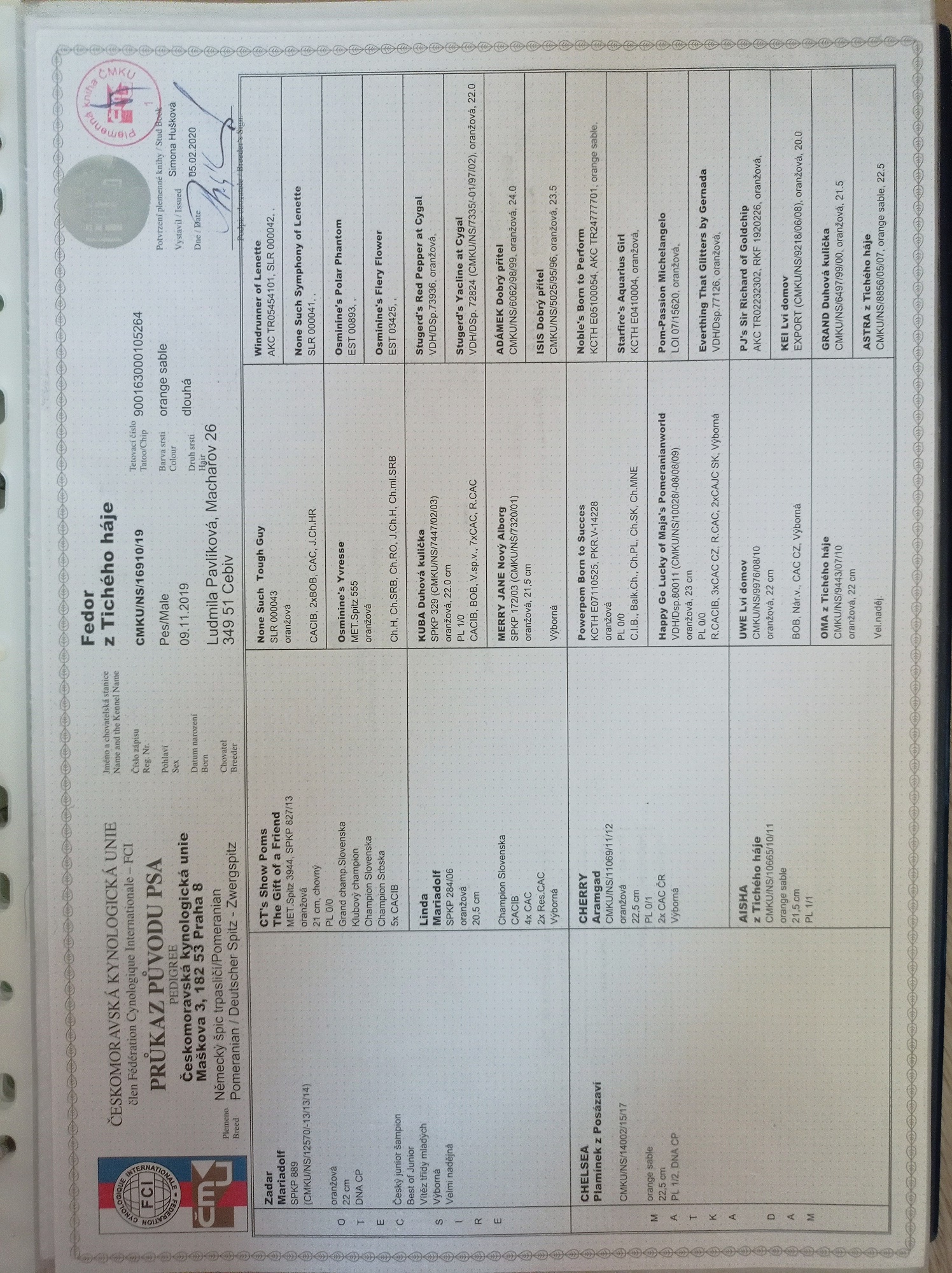 Plemenná kniha / číslo zápisu:
