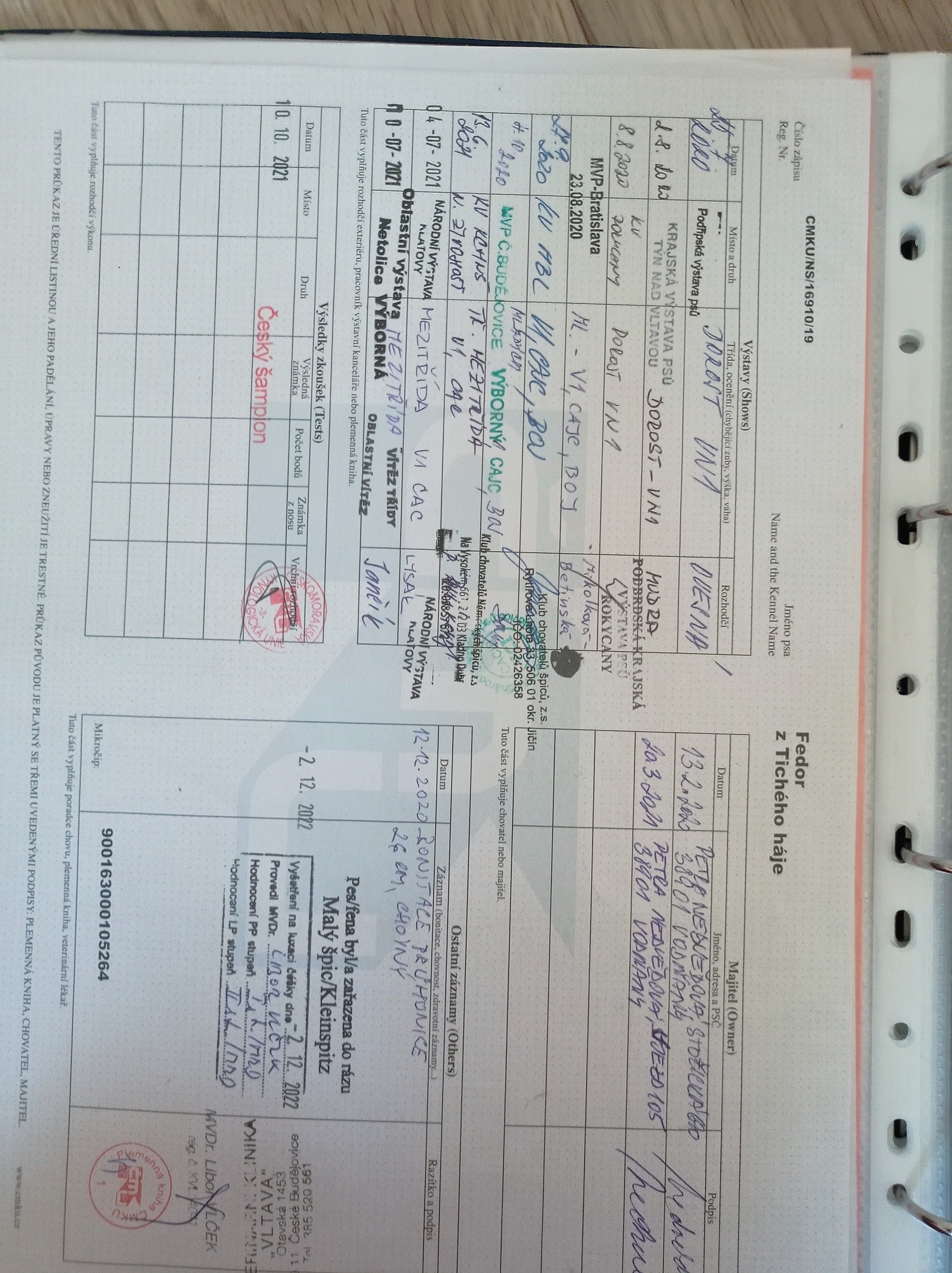 Preukaz pôvodu psa - 2. strana: