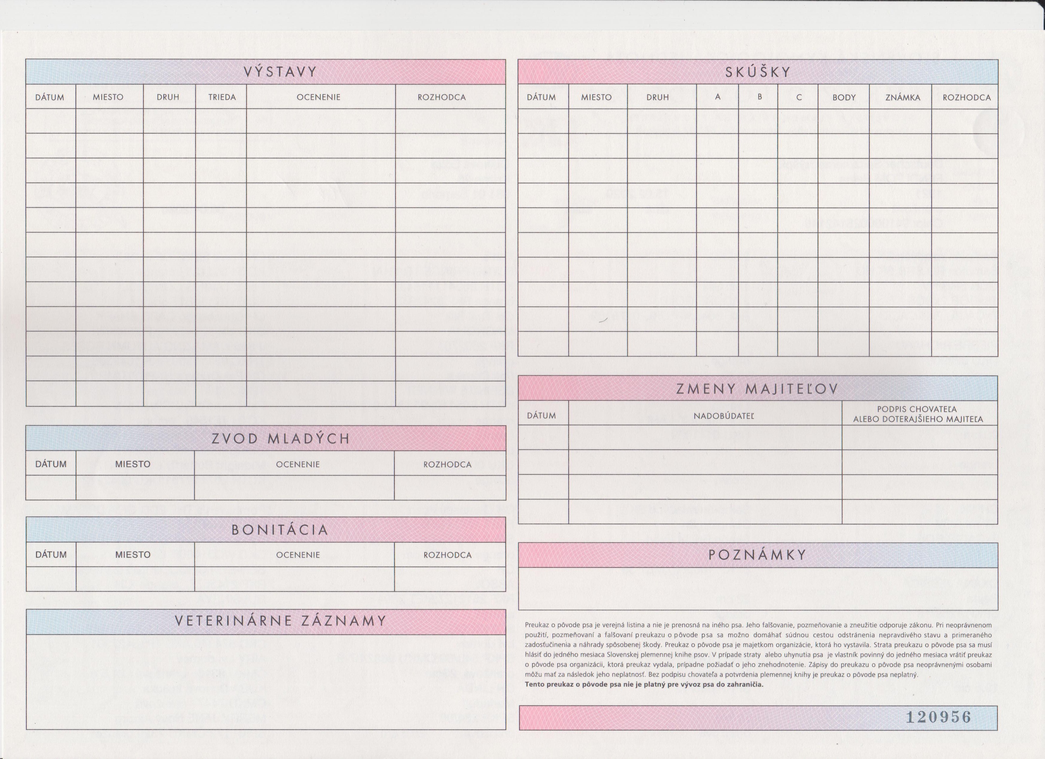 Preukaz pôvodu psa - 2. strana: