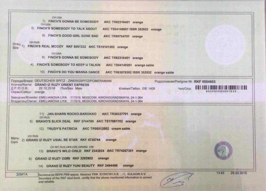 Preukaz pôvodu psa - 1. strana: