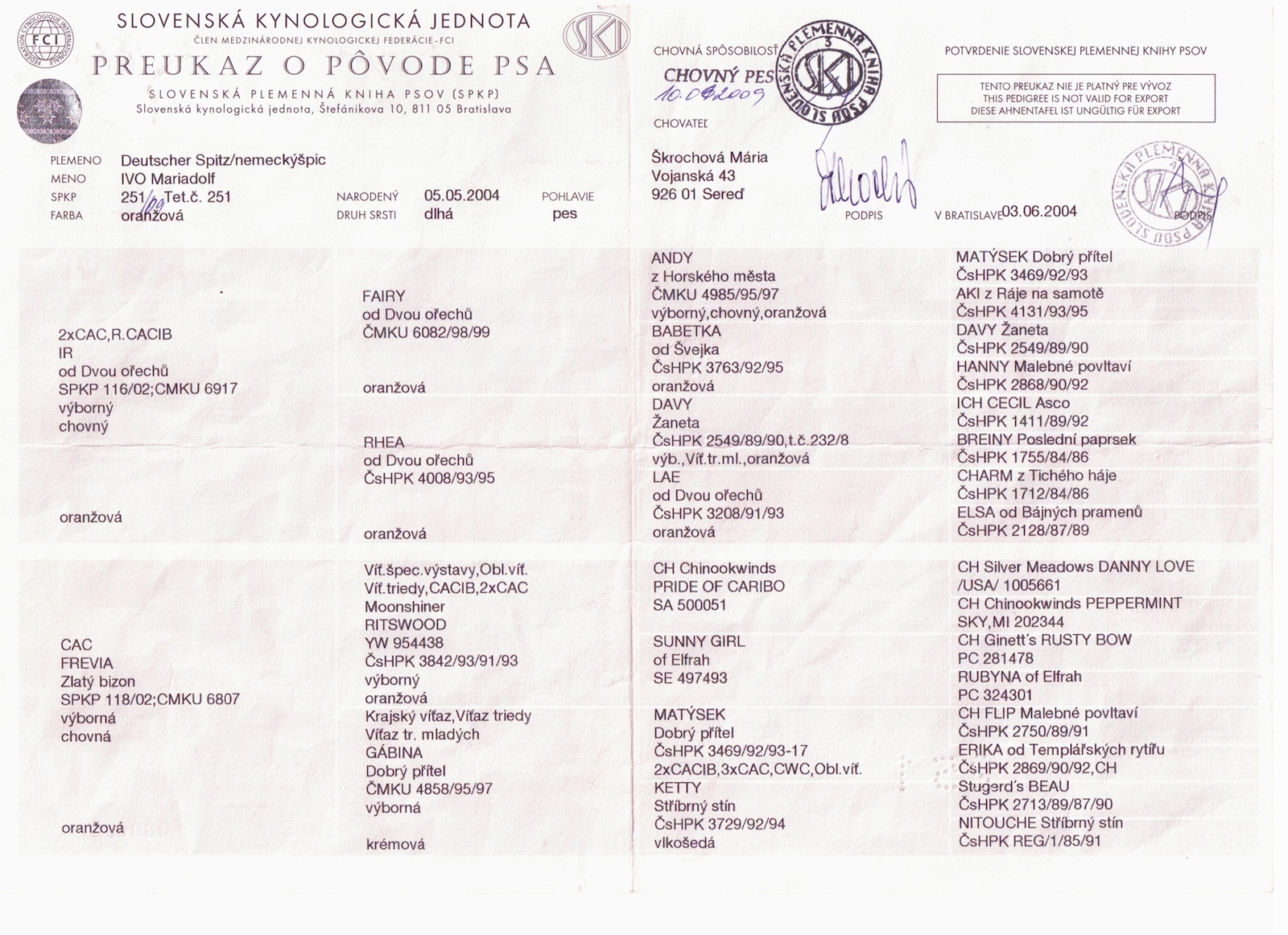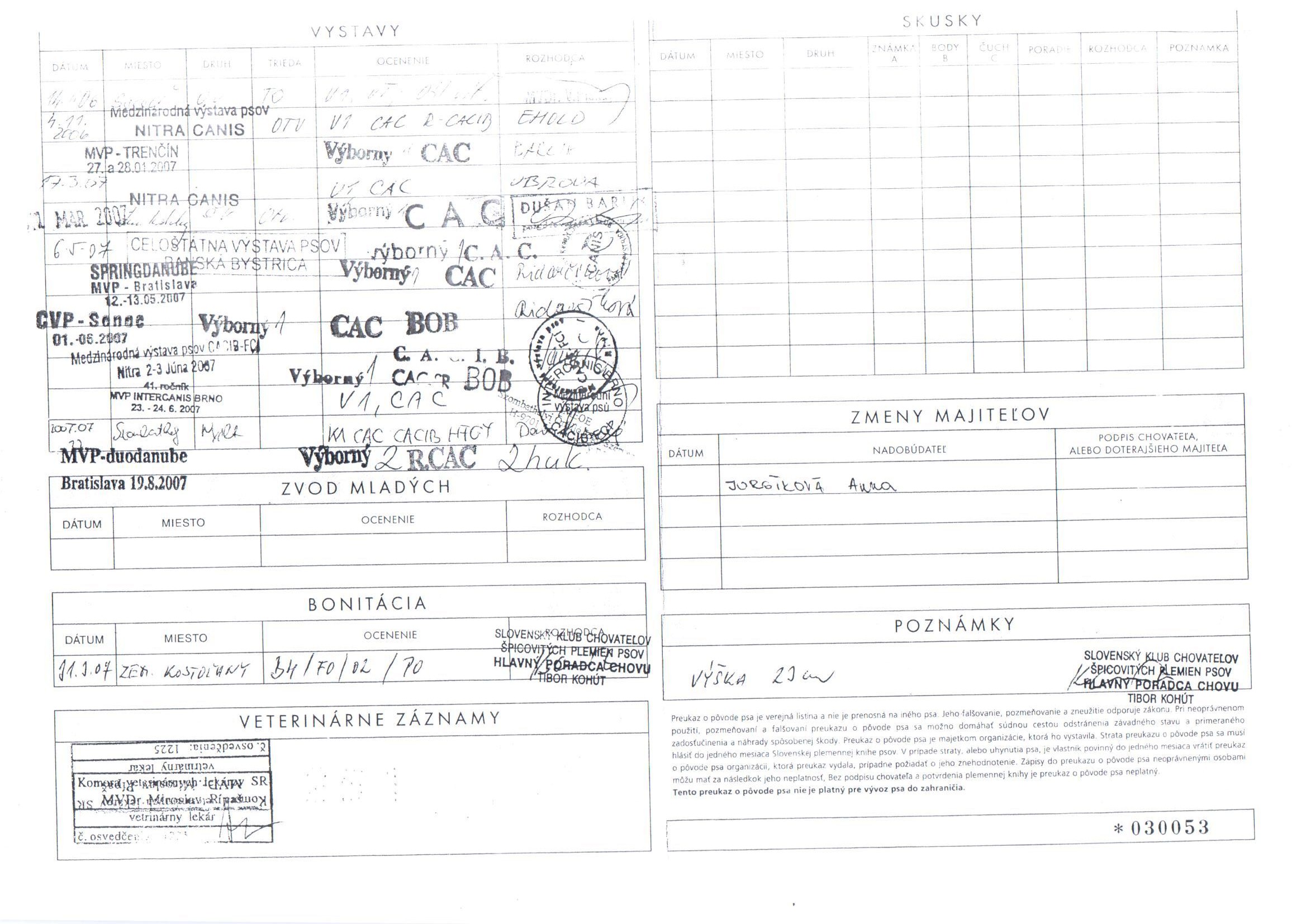 Preukaz pôvodu psa - 2. strana:
