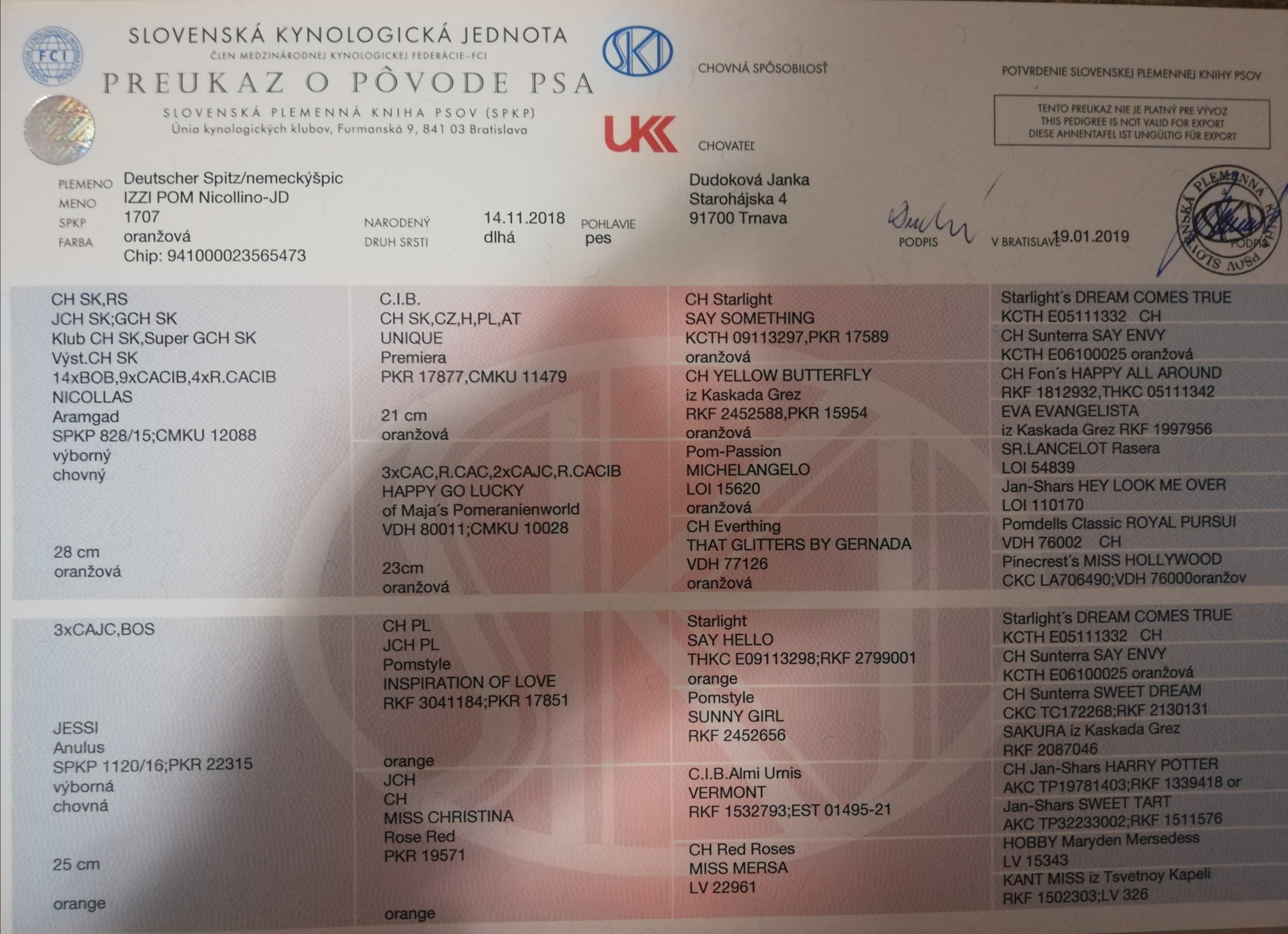 Preukaz pôvodu psa - 1. strana: