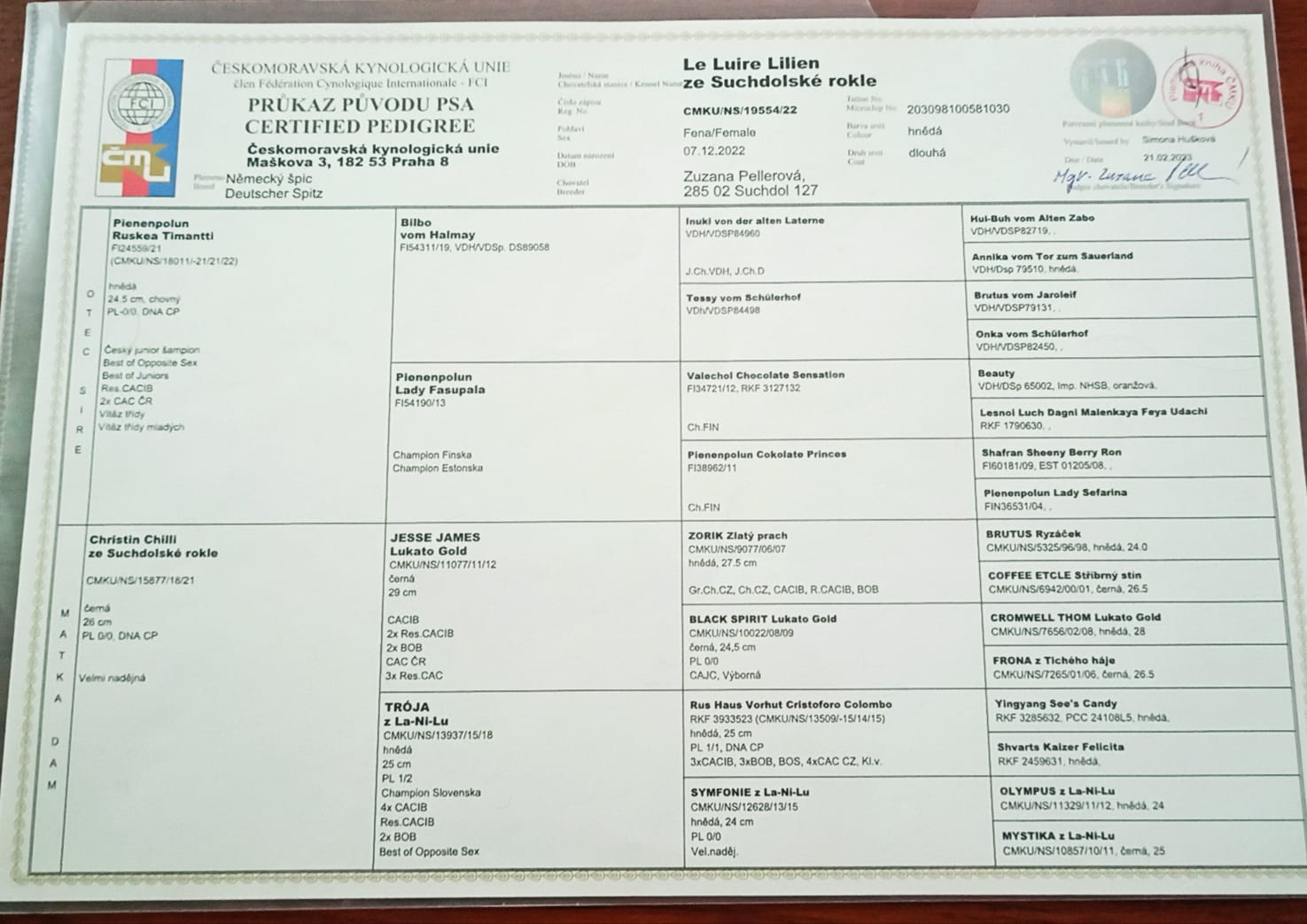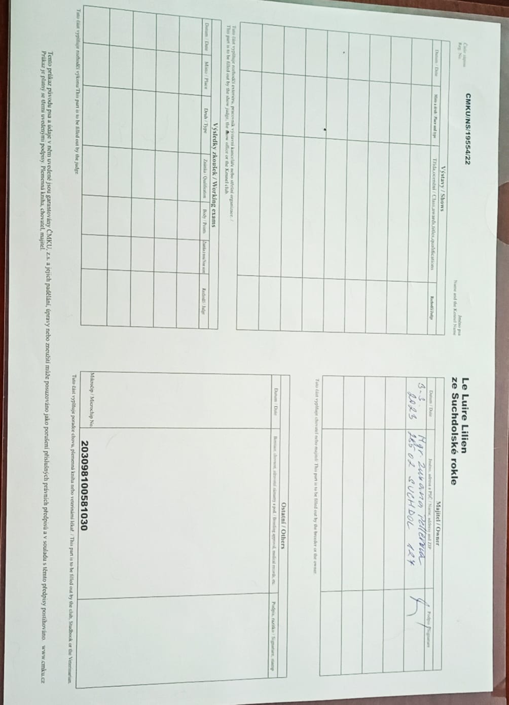 Preukaz pôvodu psa - 2. strana: