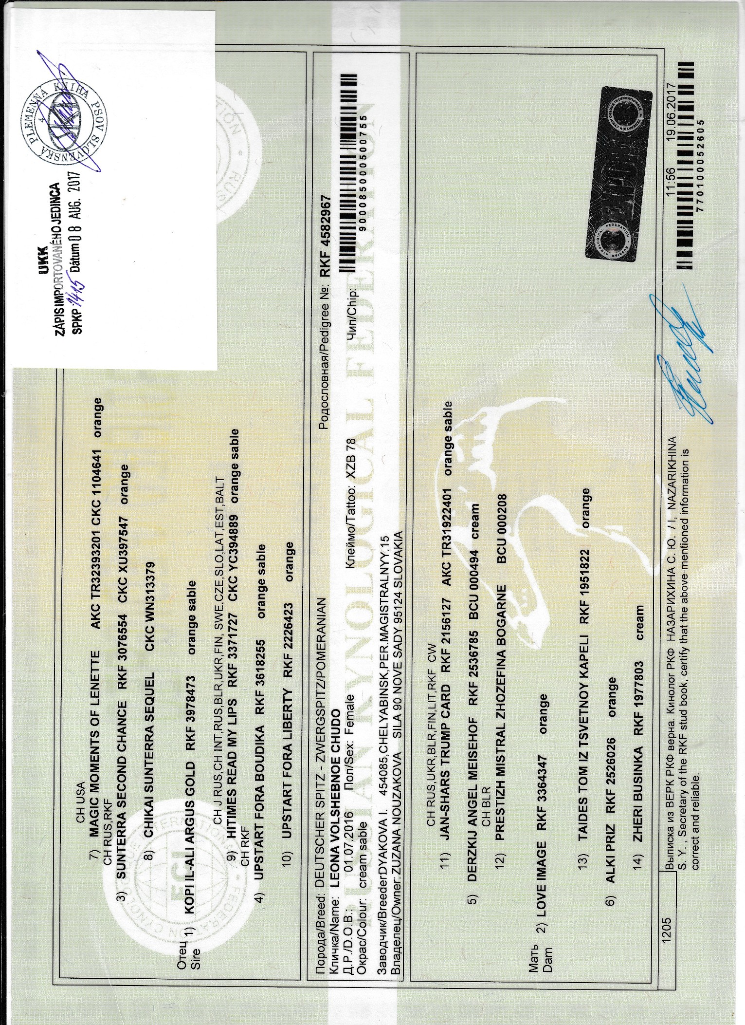 Preukaz pôvodu psa - 2. strana: