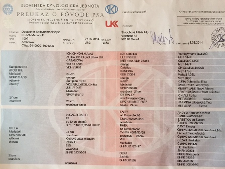 Preukaz pôvodu psa - 2. strana: