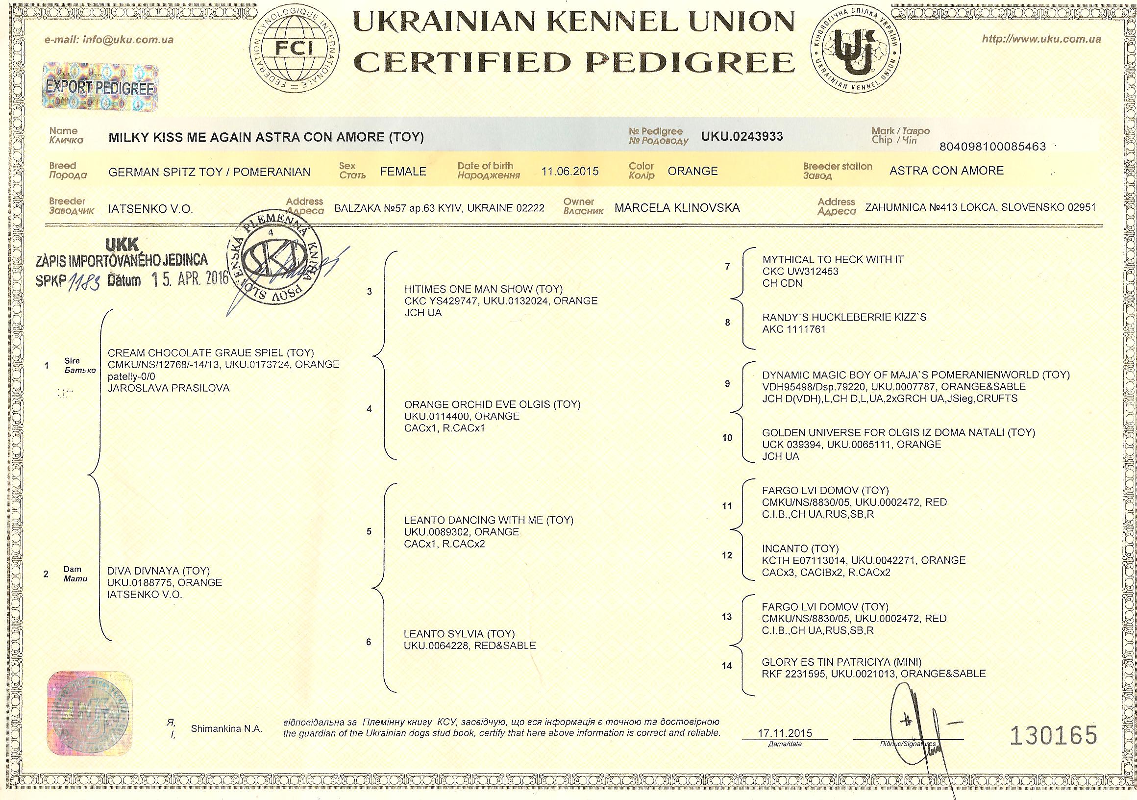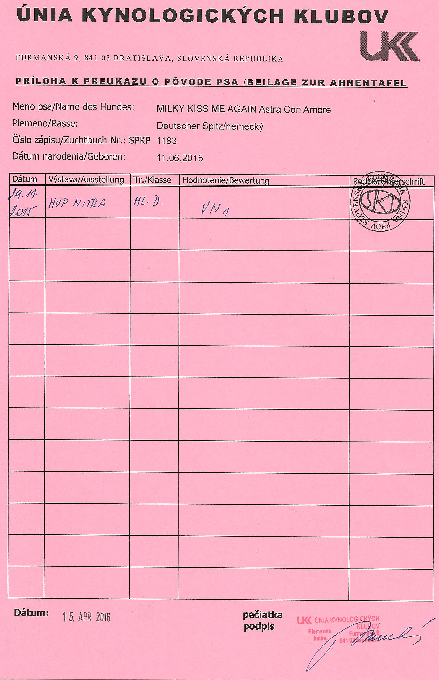 Preukaz pôvodu psa - 1. strana: