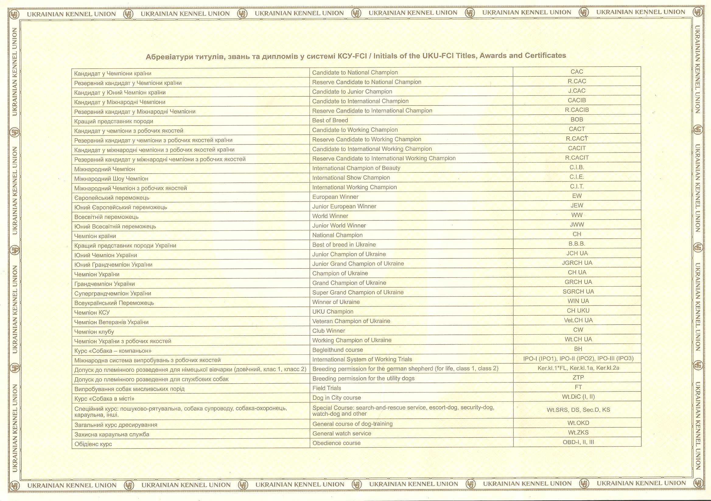 Preukaz pôvodu psa - 2. strana: