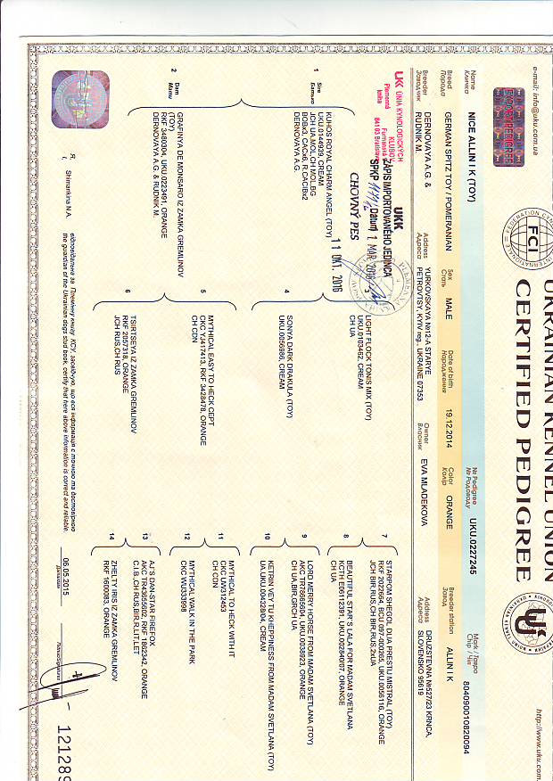 Preukaz pôvodu psa - 1. strana: