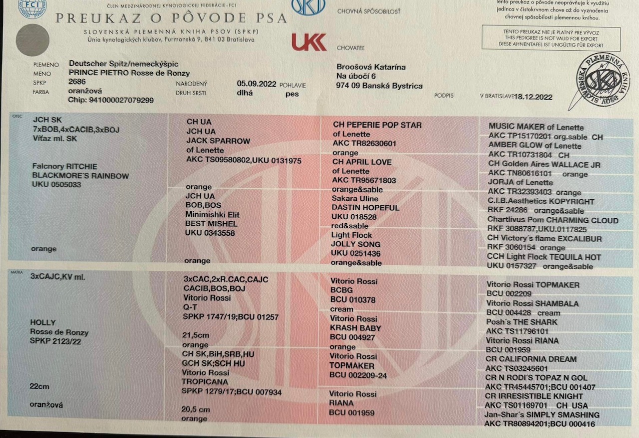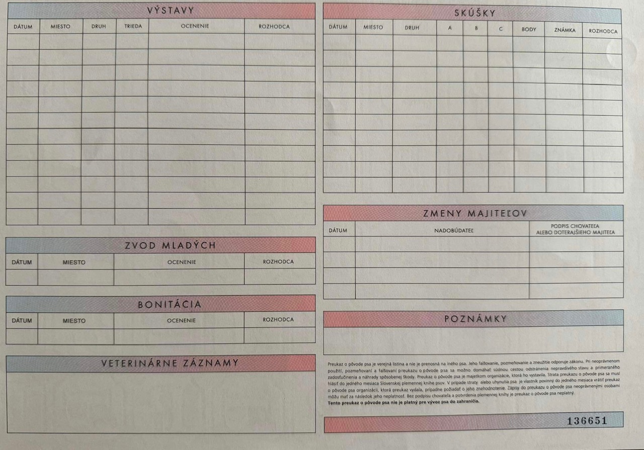 Preukaz pôvodu psa - 2. strana: