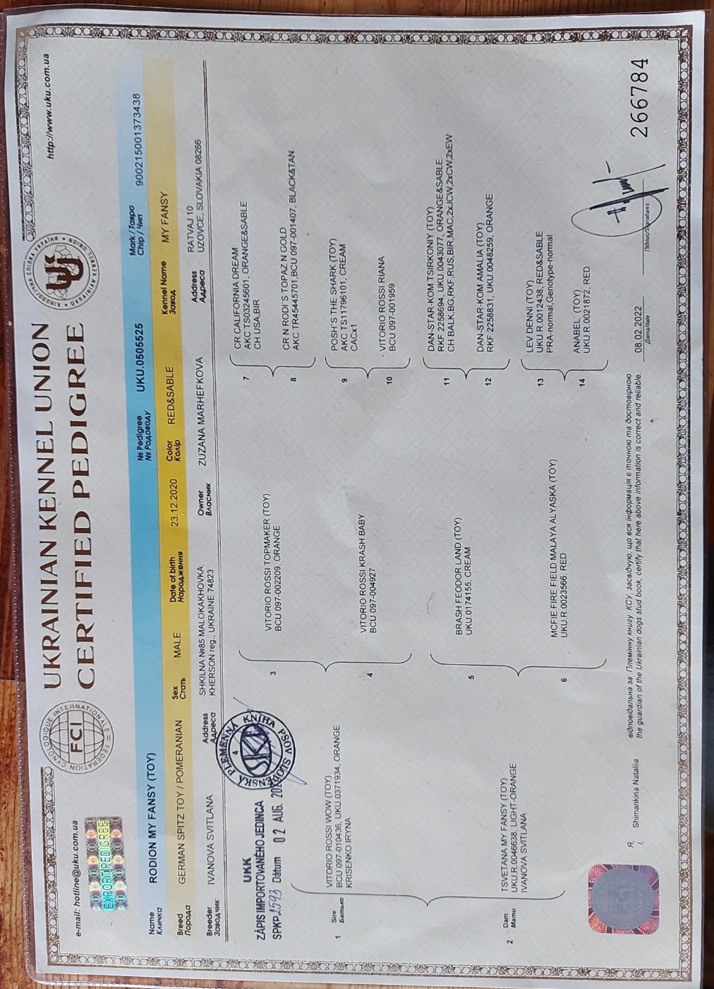 Preukaz pôvodu psa - 2. strana: