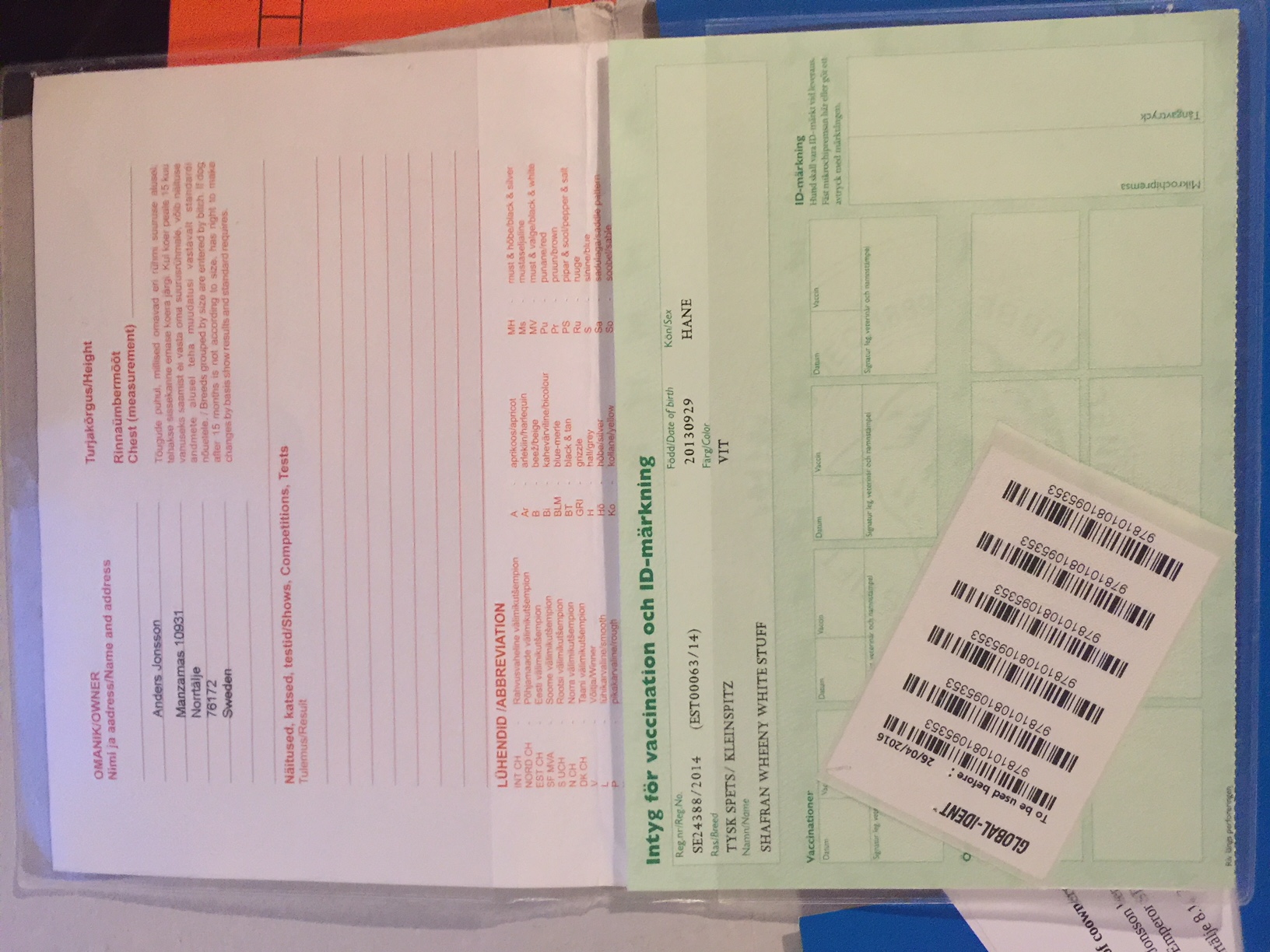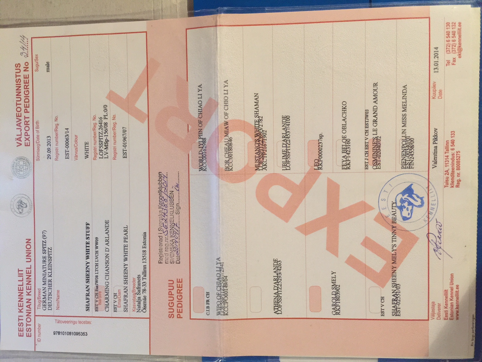 Preukaz pôvodu psa - 1. strana: