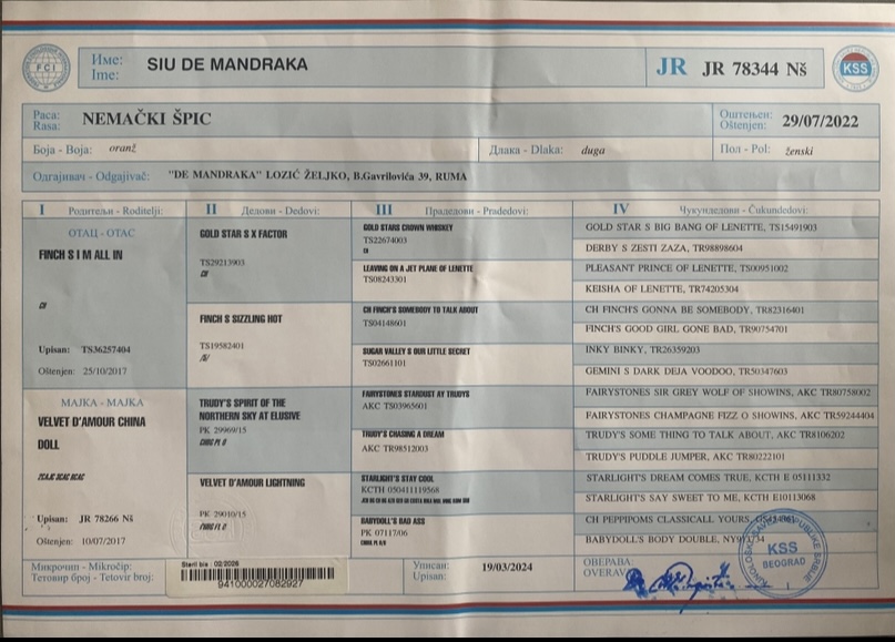 Preukaz pôvodu psa - 1. strana: