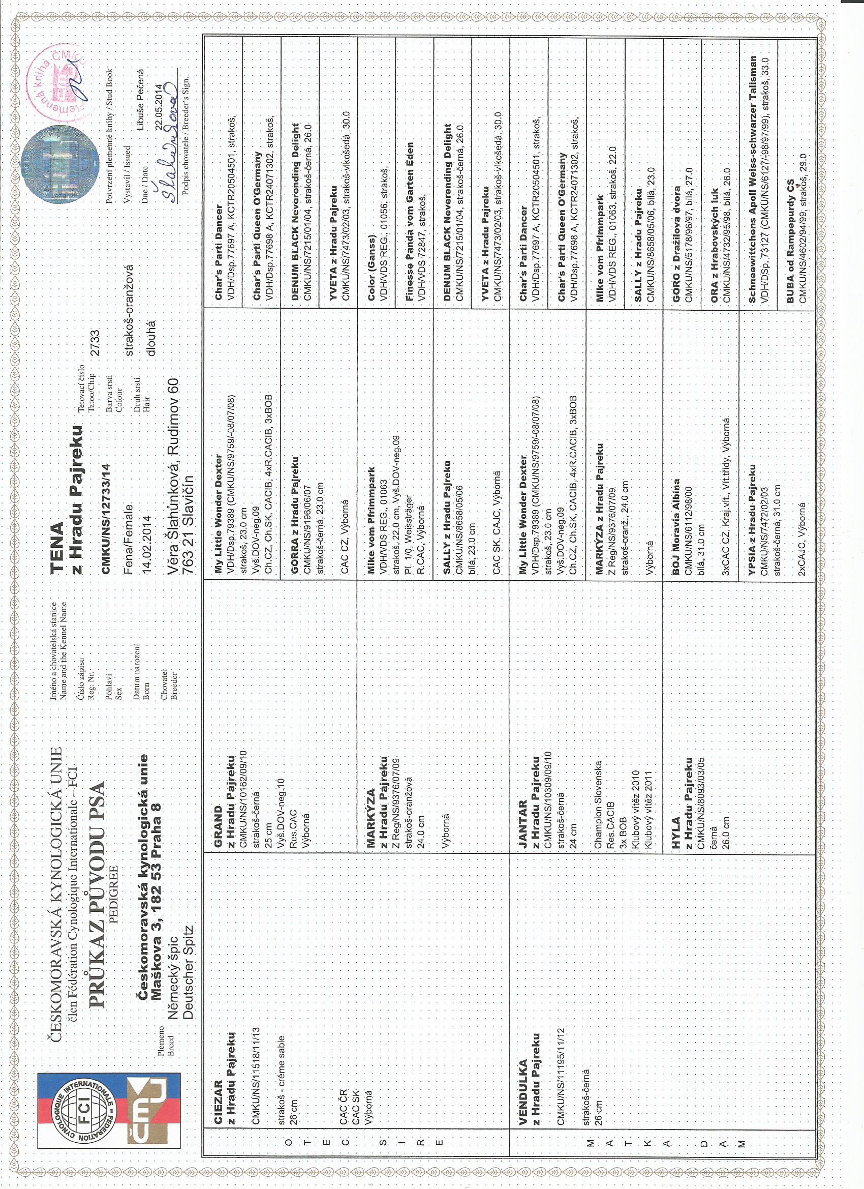 Preukaz pôvodu psa - 2. strana: