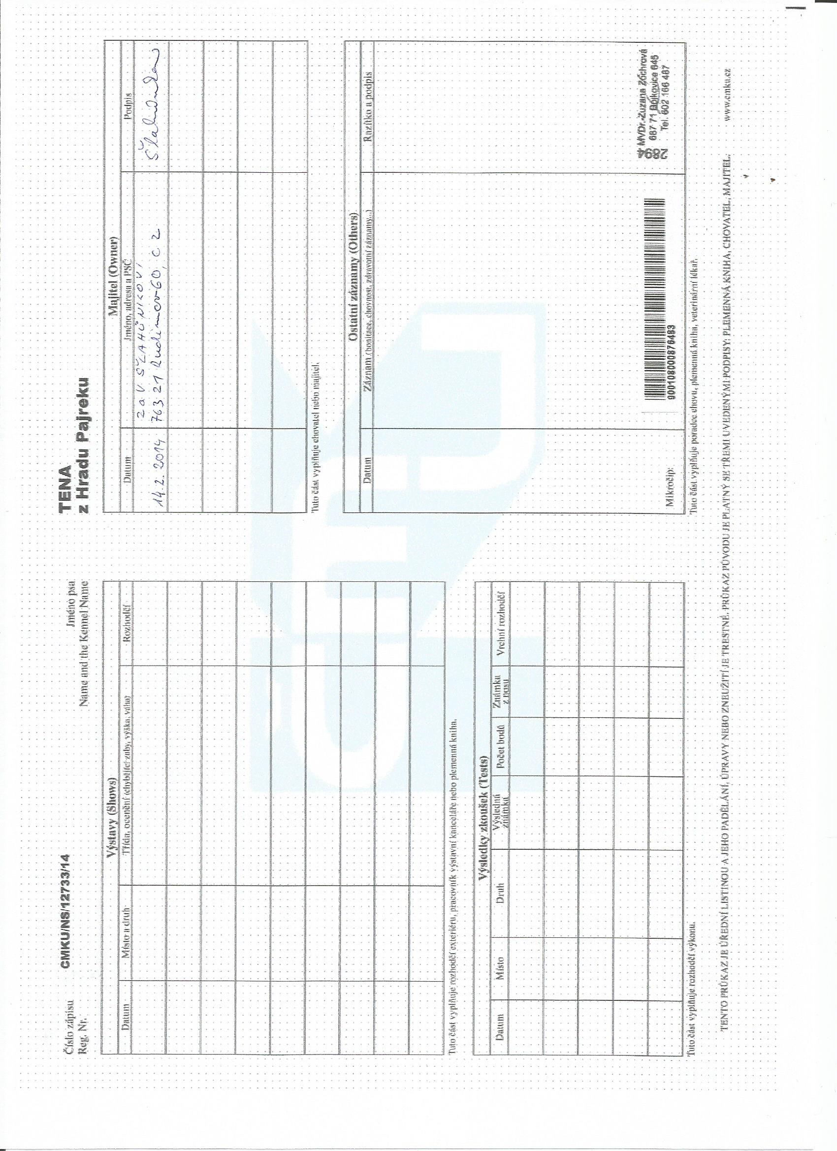 Plemenná kniha / číslo zápisu: