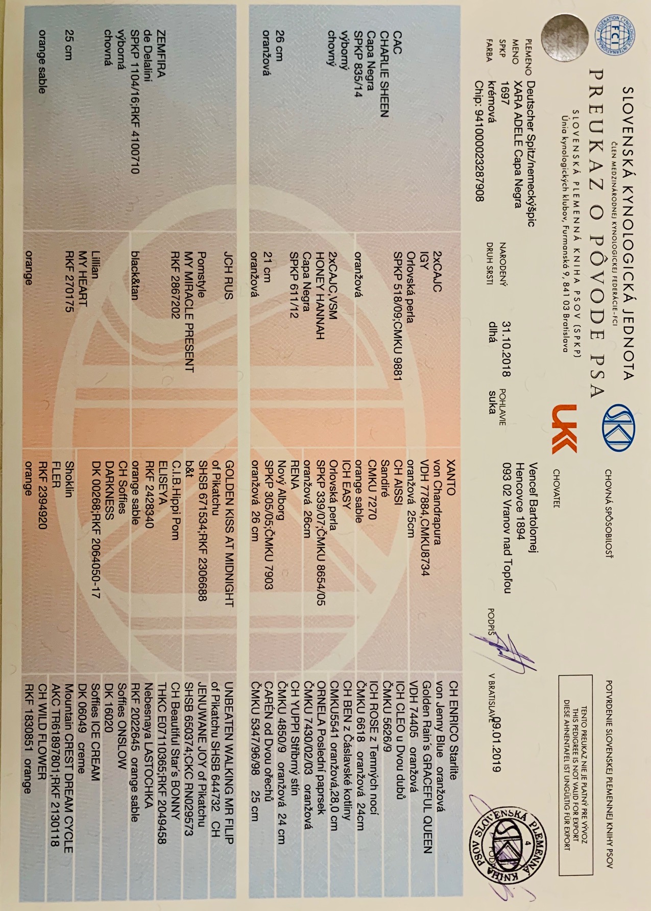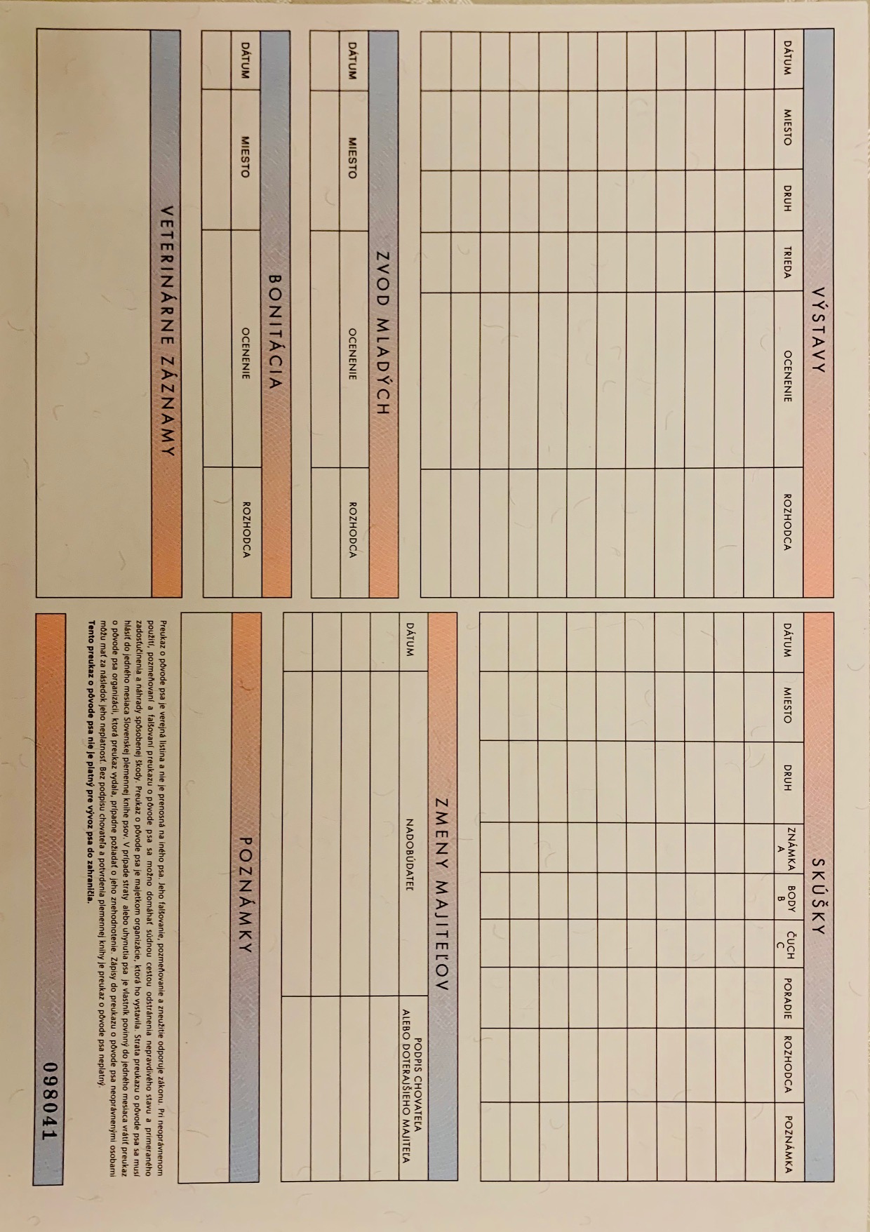 Preukaz pôvodu psa - 1. strana: